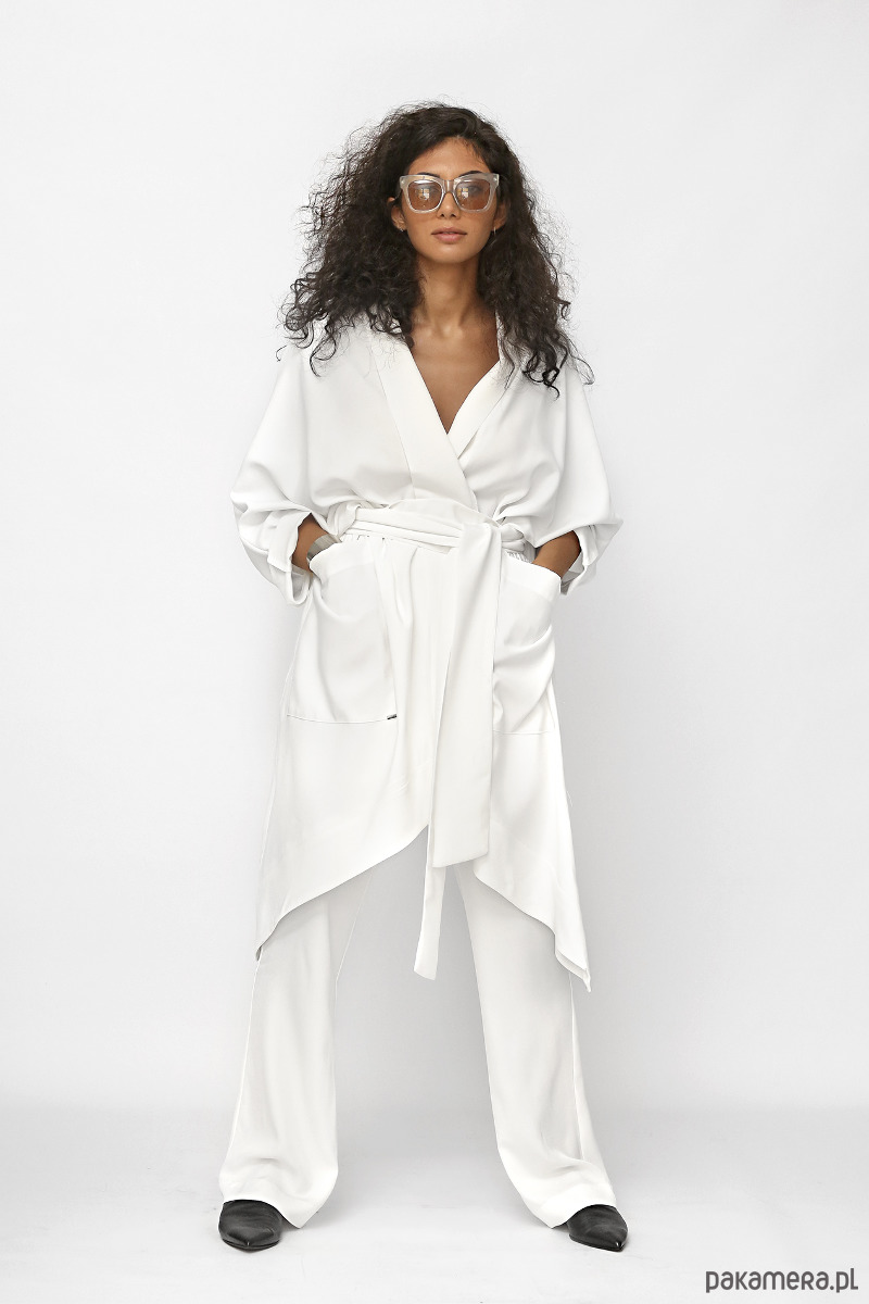 Alina – płaszczyk, narzutka w formie długiego, luźnego kimona z paskiem.