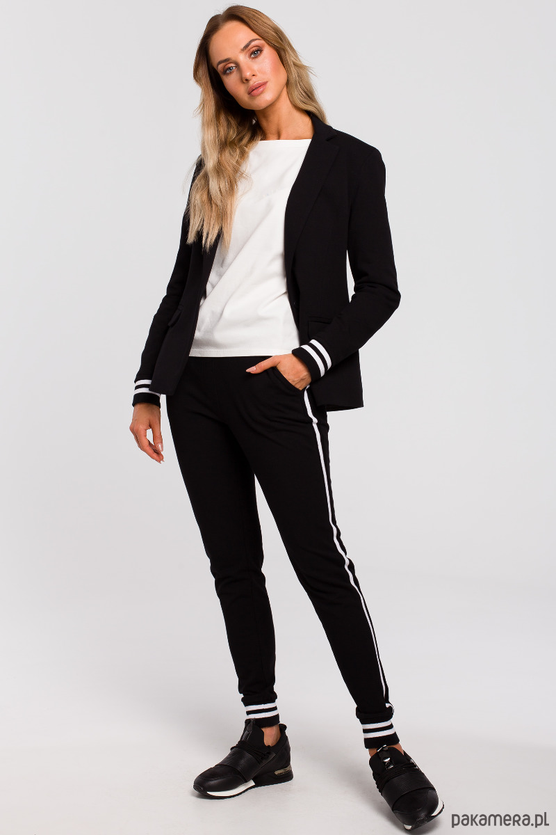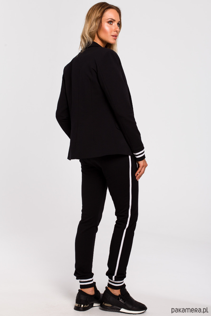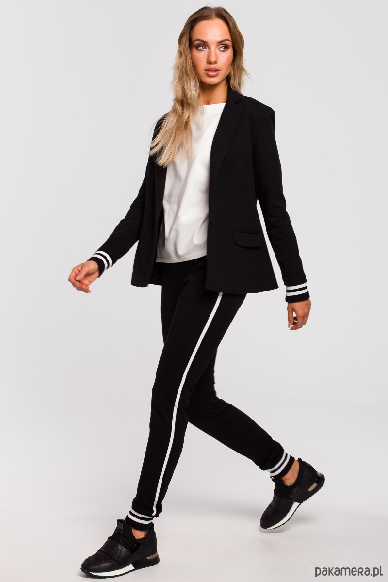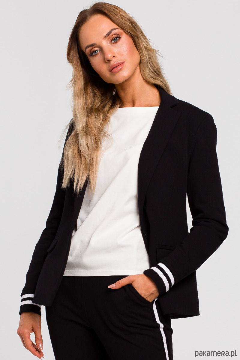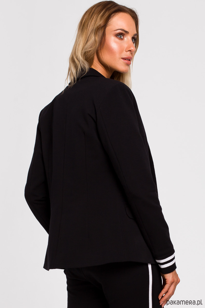 Sportowa elegancja na co dzień - tak! Ten wyjątkowy żakiet ma klasyczny krój i kołnierz ale sportowe wykończenie w rękawach - ściągacz dwukolorowy. Założysz go więc i do pracy i na spacer.