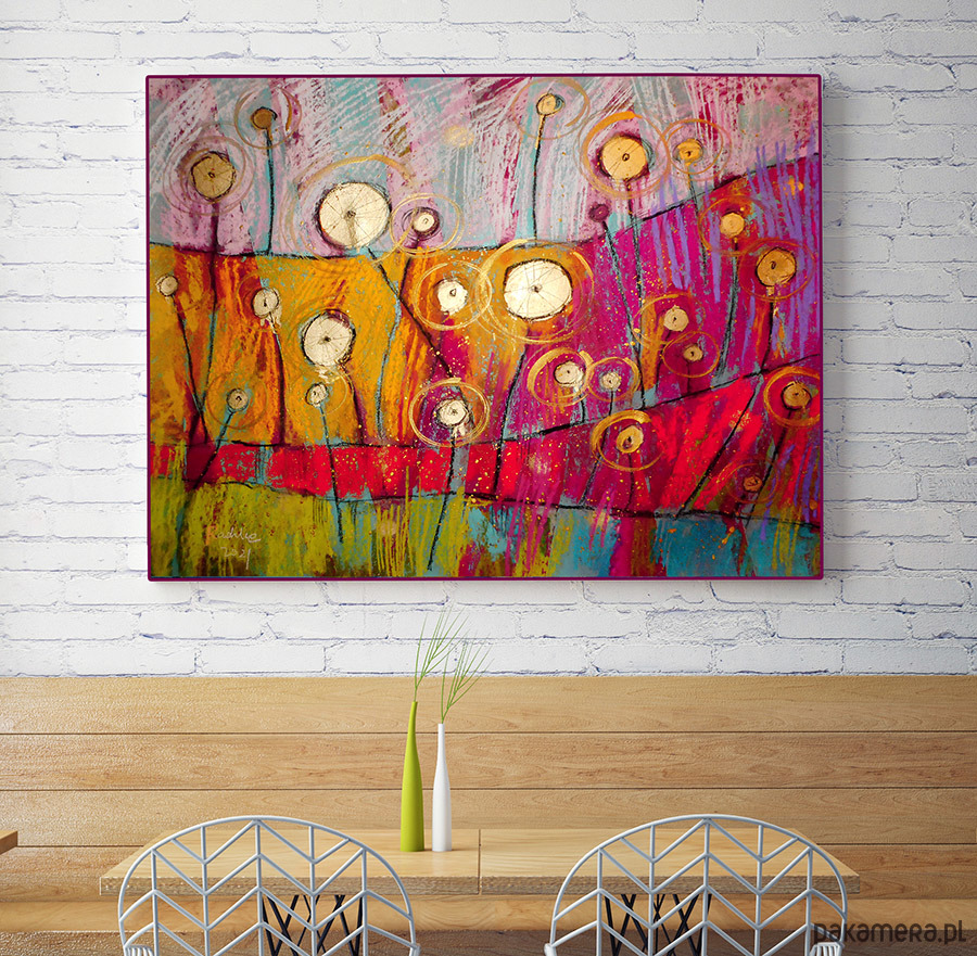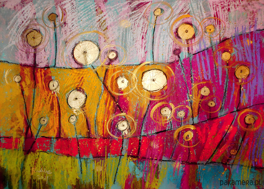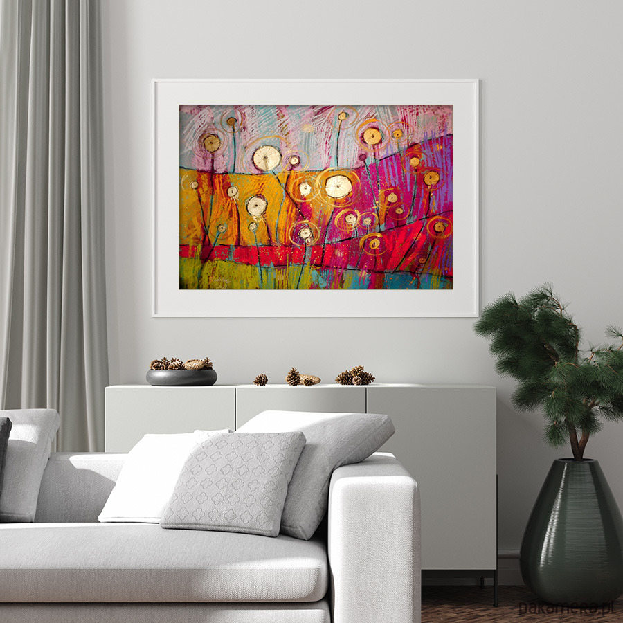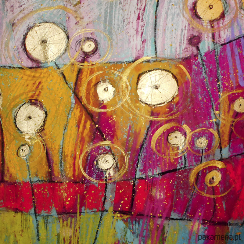 Plakat formatu B2 (70 x 50 cm) na podstawie autorskiego rysunku pastelami suchymi, węglem i złotym sprayem. Papier satynowany półmatowy, gramatura 200 g/m2.