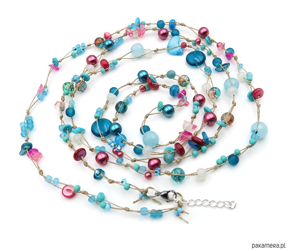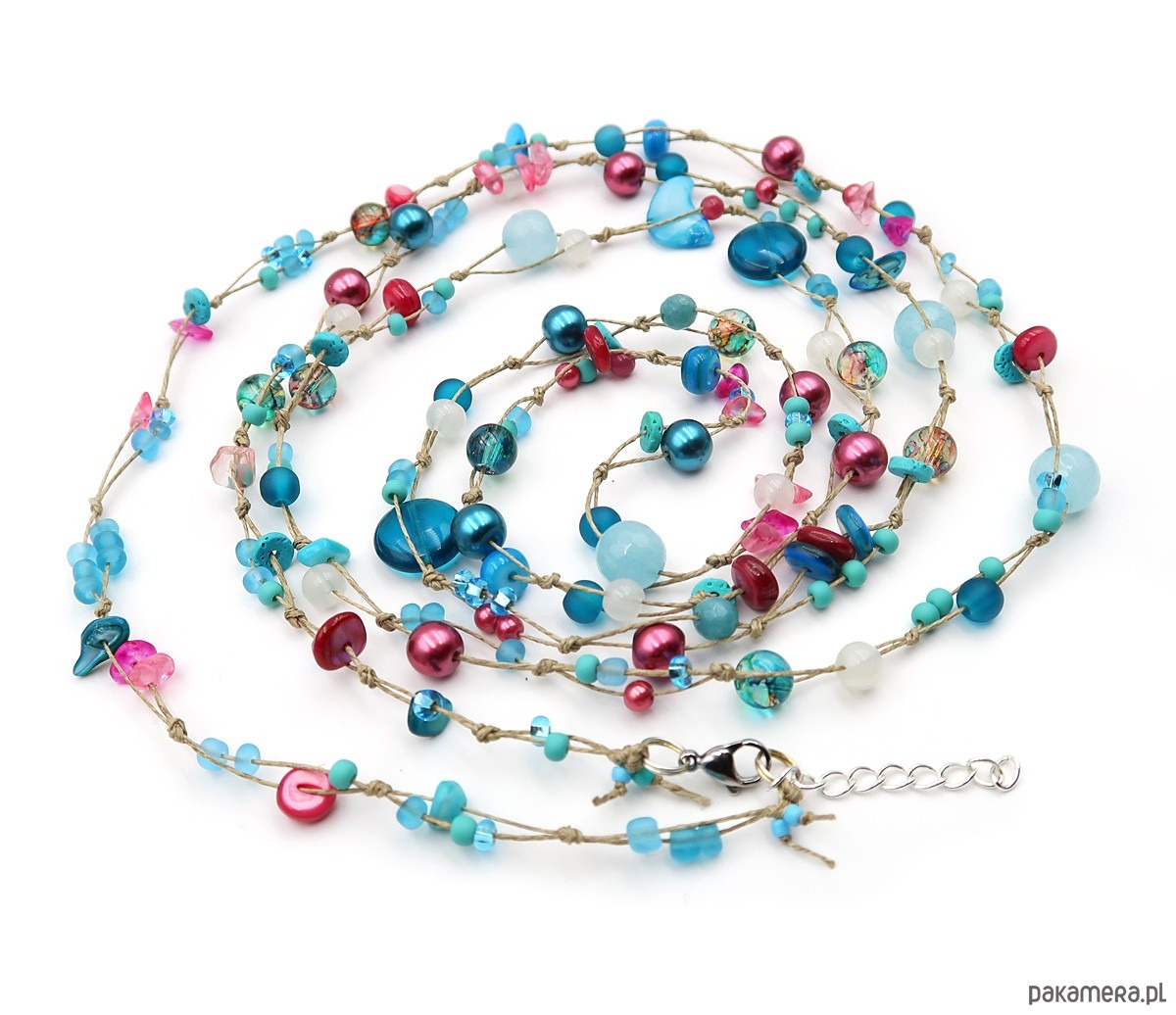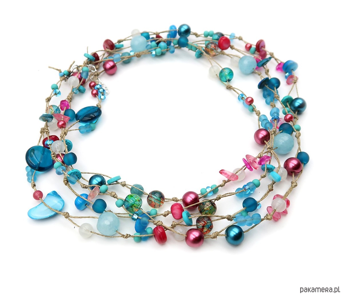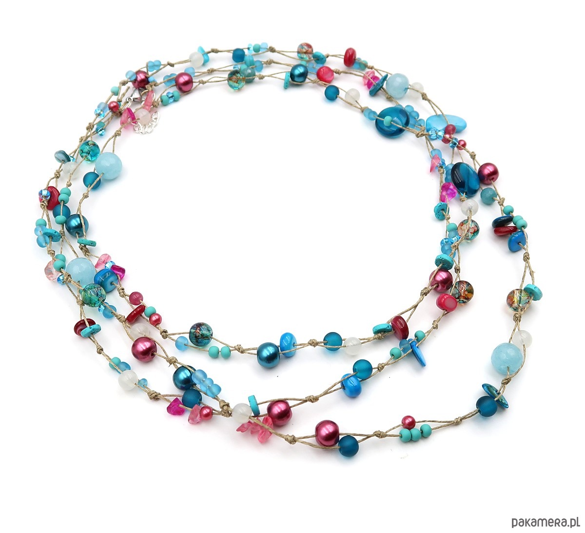 Ręcznie wykonany sznur korali na bazie naturalnej przędzy lnianej w kolorze surowego lnu.