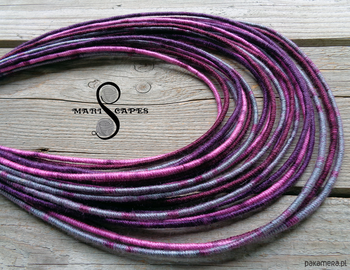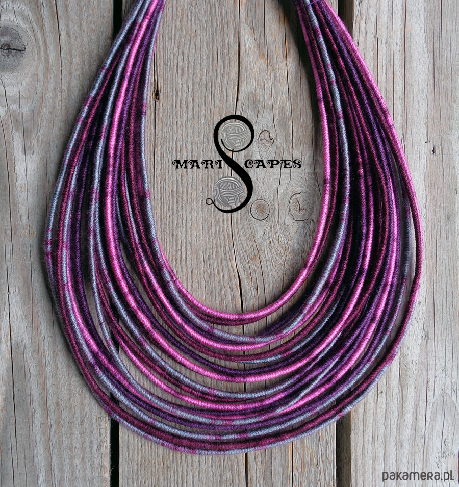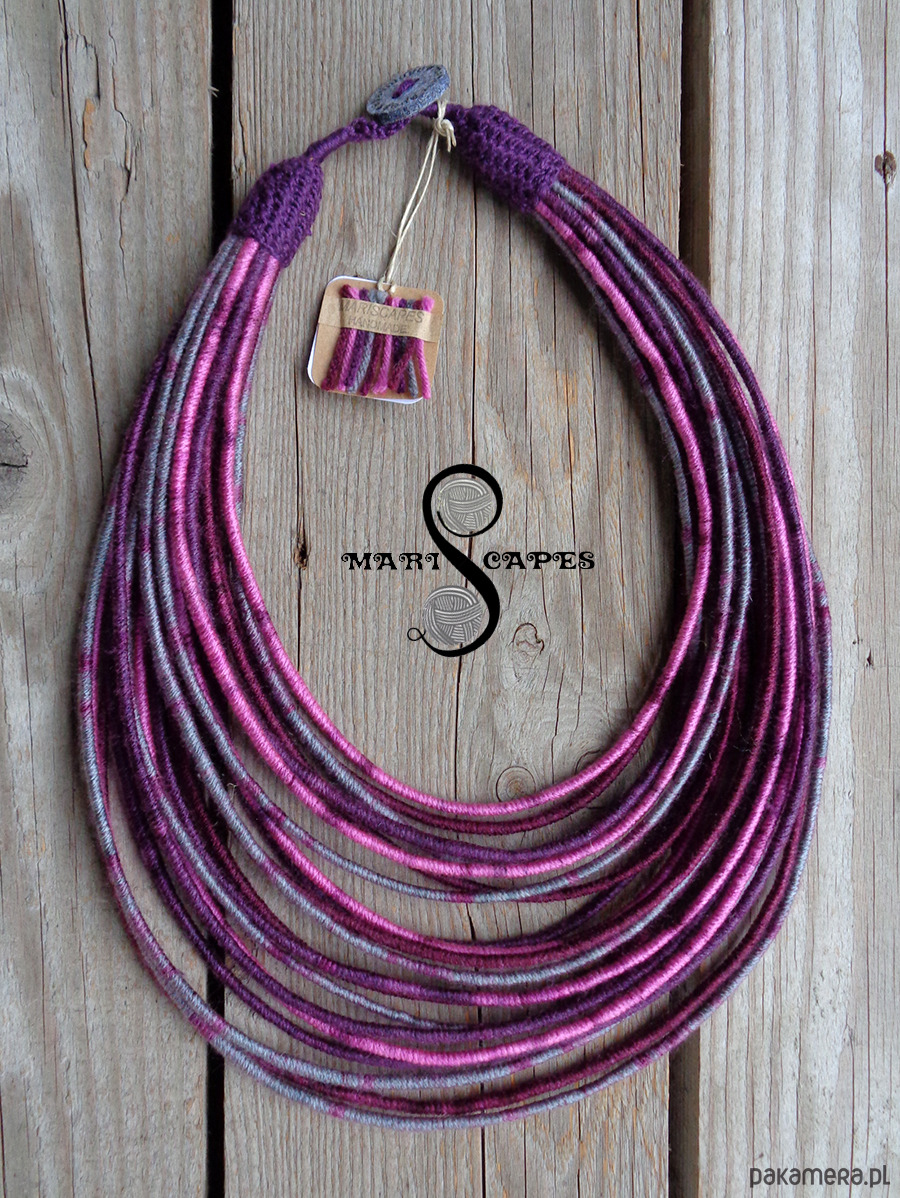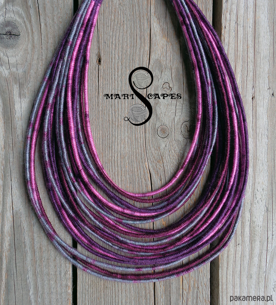 Unikalny naszyjnik w stylu etnicznym / afrykańskim z wymyślonej przeze mnie oryginalnej serii włóczkowych "Masajek". Długość ok. 45-65 cm Stworzony z połączenia wielu długich, nieco sztywnych sznurków, pieczołowicie ręcznie owiniętych miękką, non-alergiczna włóczką akrylową w soczystych jesiennych odcieniach. Wielowarstwowe kolorowe pasemka przywołują w pamięci masajskie ozdoby.
