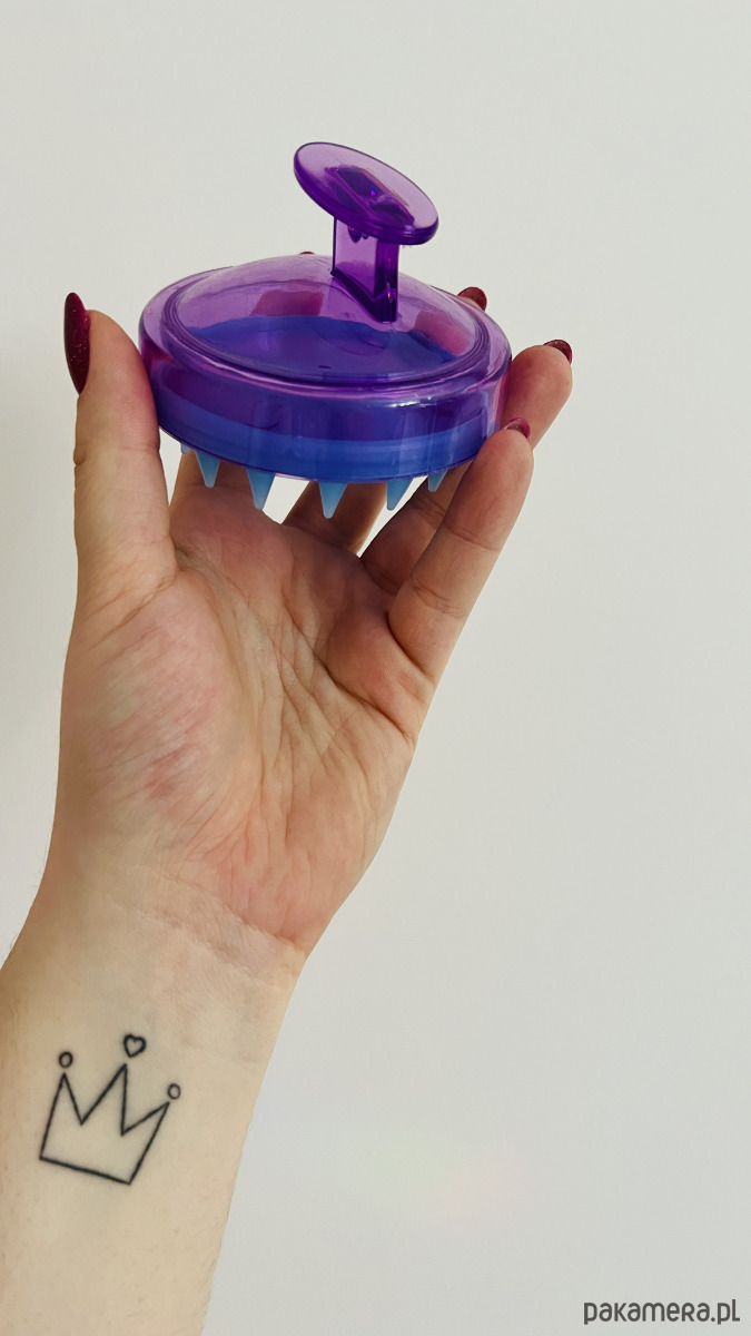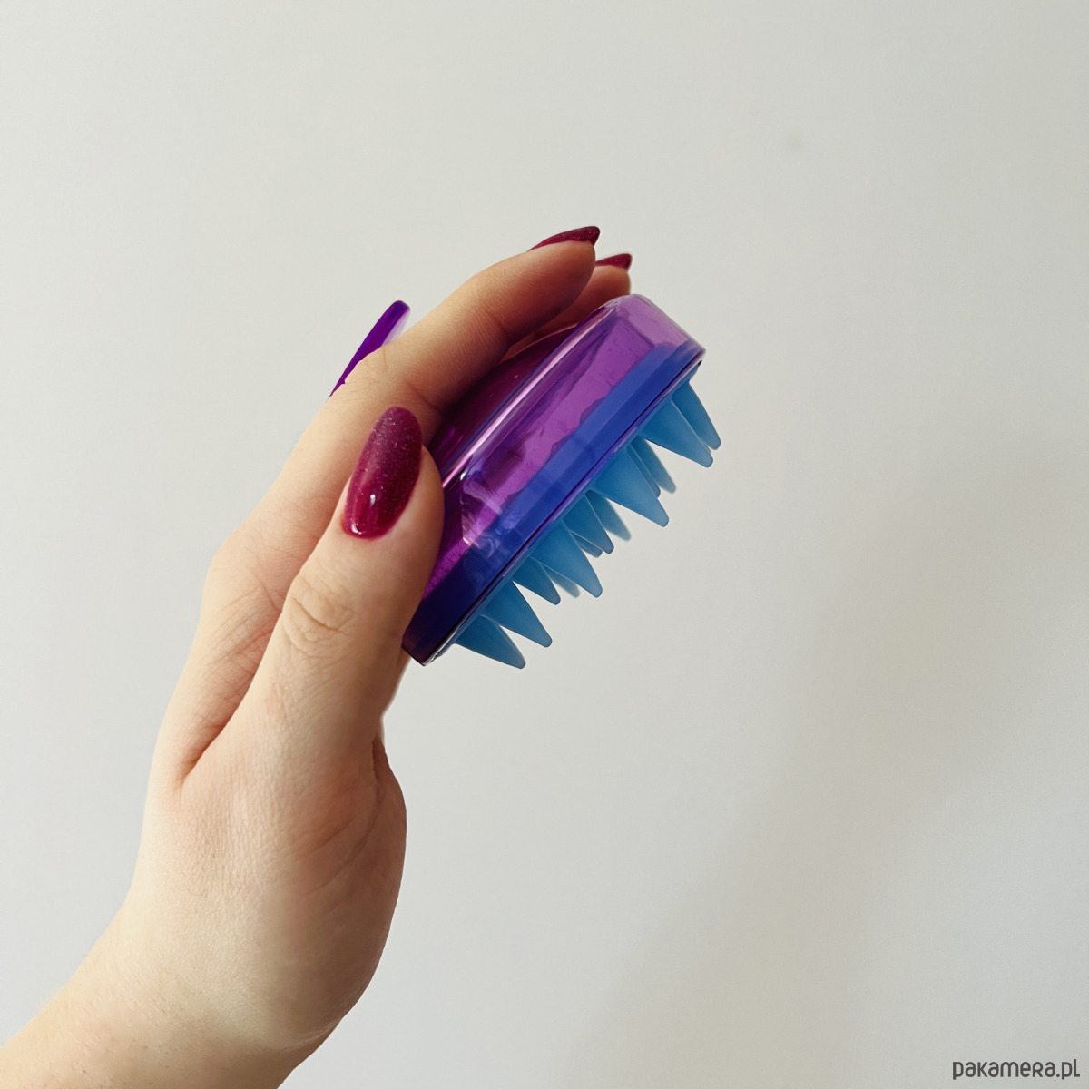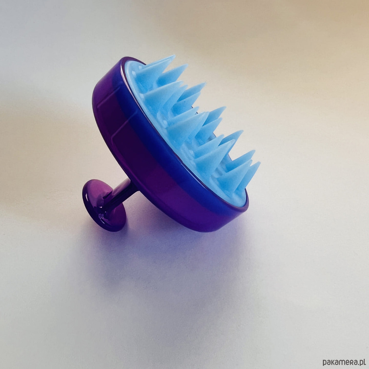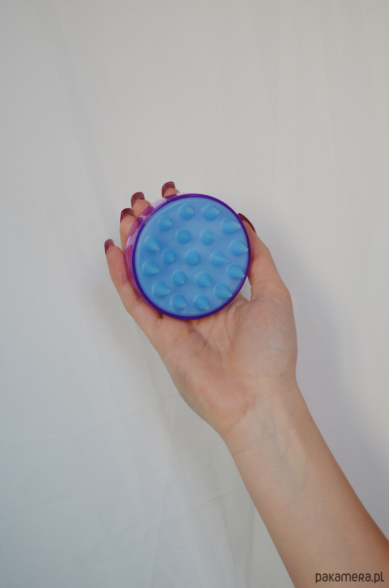 Dzięki swojemu kształtowi i wygodnej rączce dotrzesz do każdego centymetra skalpu. Masaż wykonuje się okrężnymi ruchami.