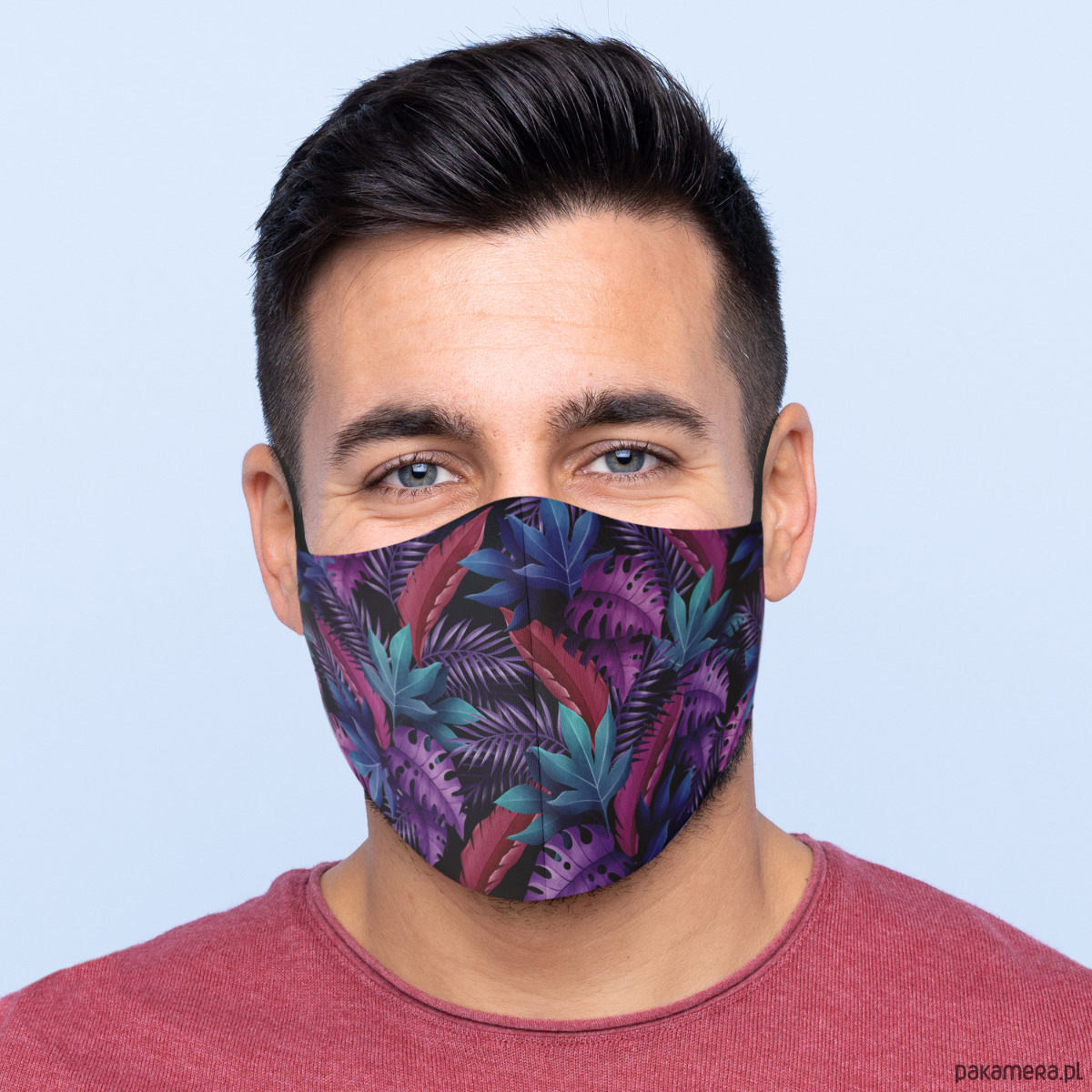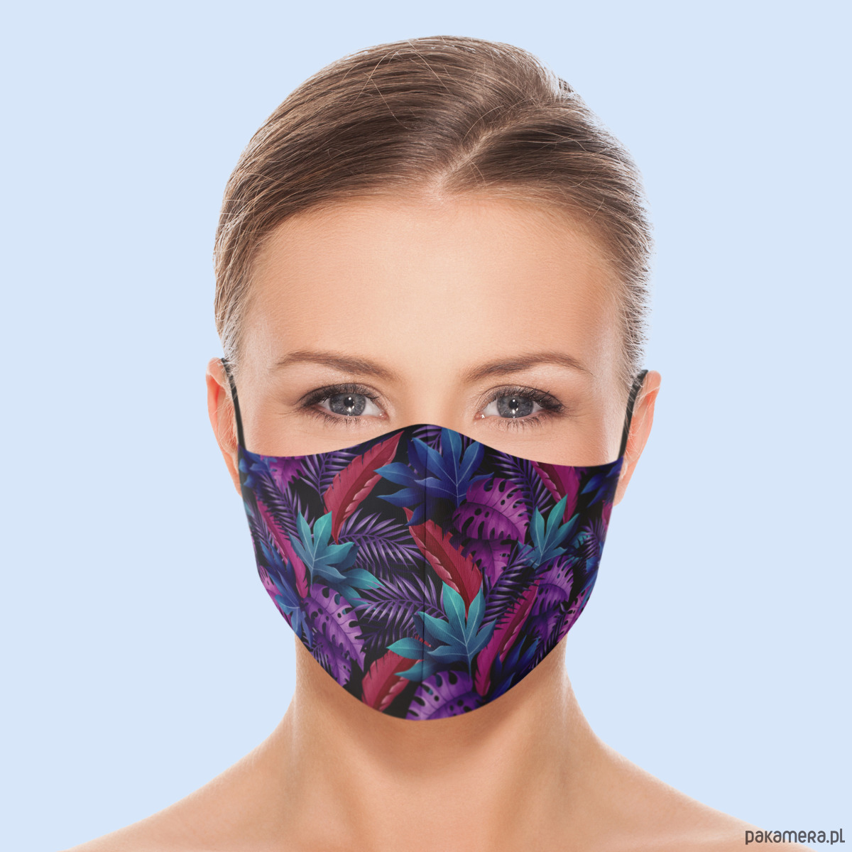 Maseczka 3-warstwowa wielorazowa FIOLETOWE LIŚCIE