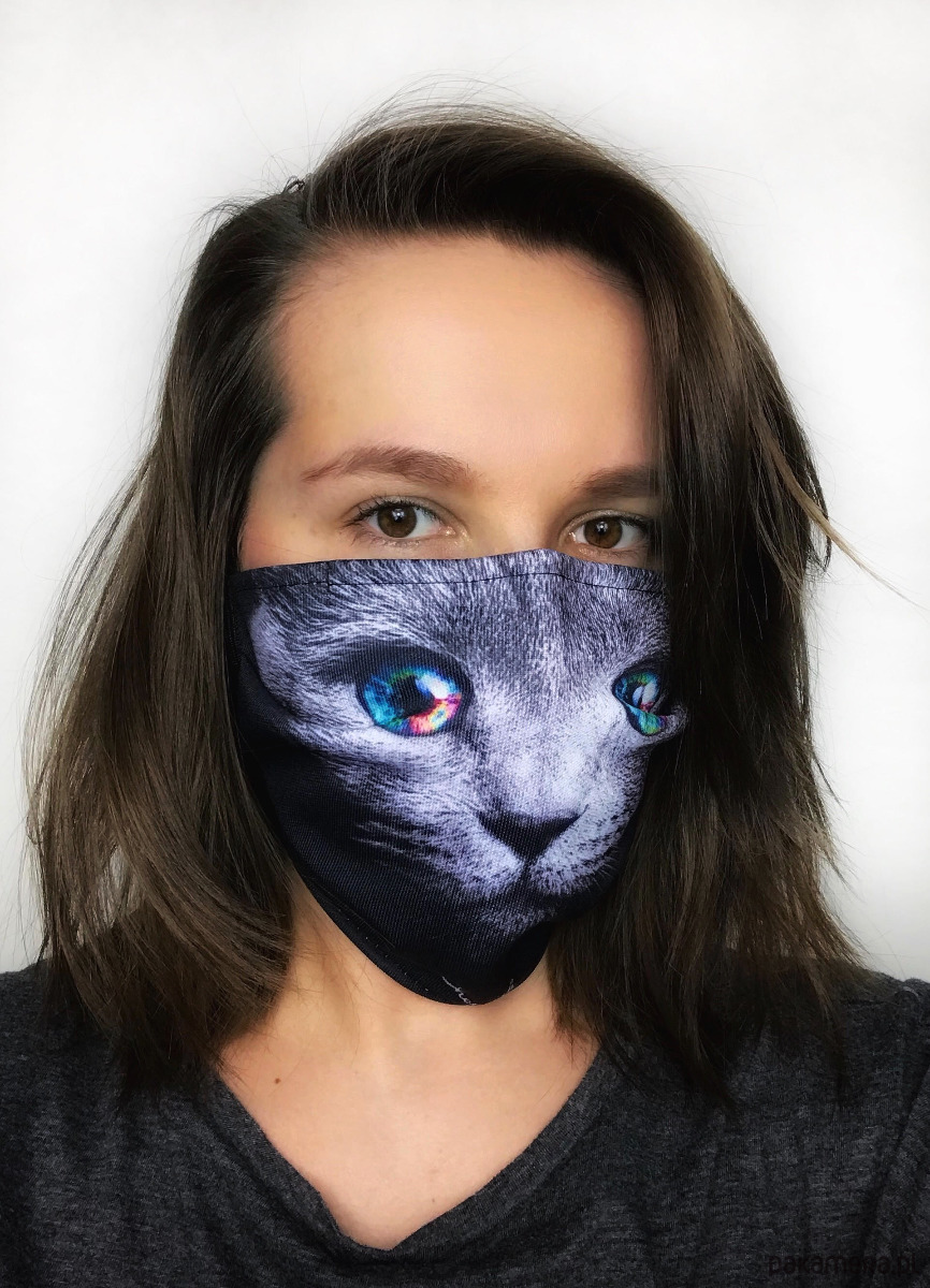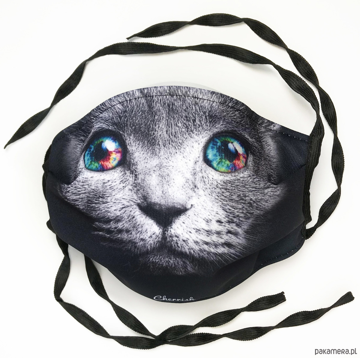 Na nosie posiada metalową blaszkę którą można dopasować do kształtu nosa.