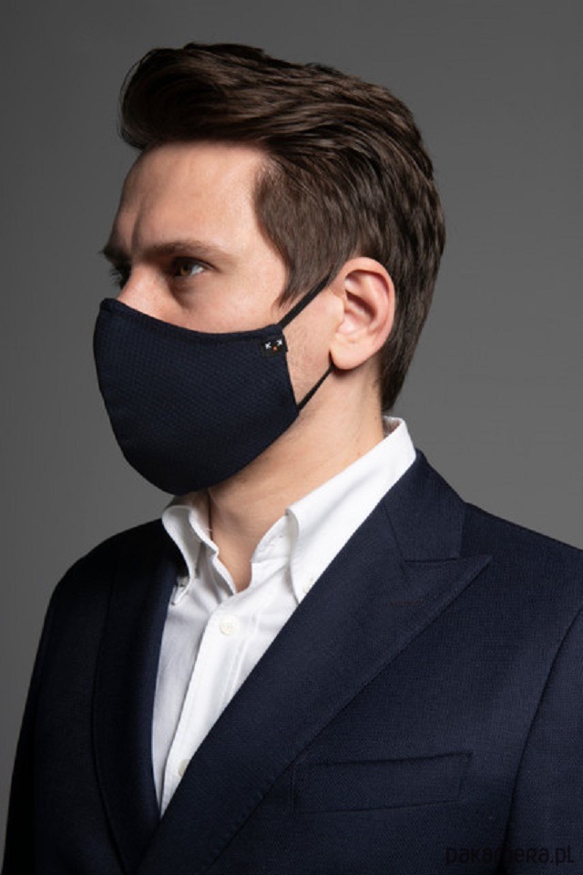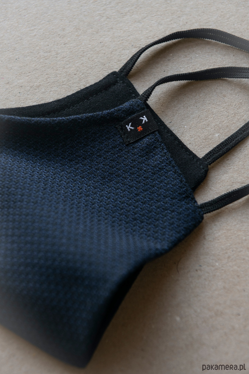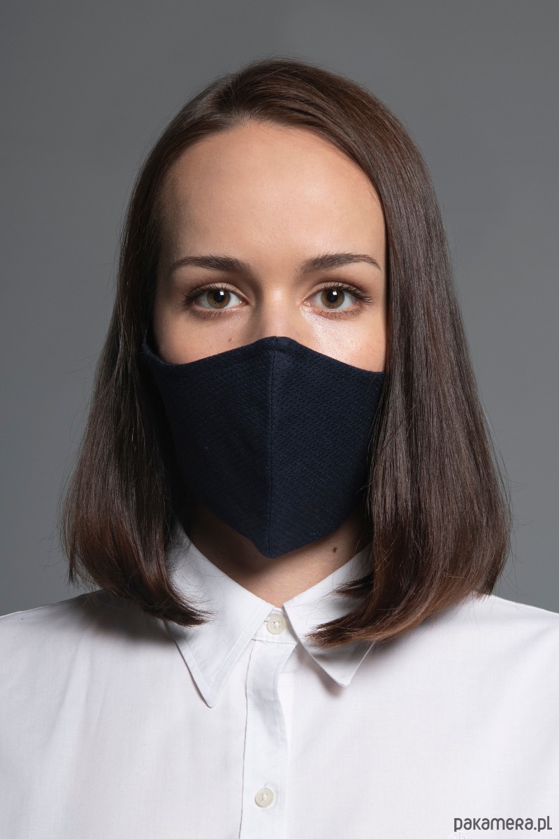 Maska wielokrotnego użytku w kolorze granatowym, o profilowanym, ergonomicznym kształcie, wykonana z dwóch warstw tkaniny. Zewnętrzna z wysokogatunkowej bawełny, a wewnętrzna z wysokiej jakości włókien bambusowych, które są niezwykle delikatne dla skóry, hipoalergiczne, doskonale chłonne i odporne na bakterie oraz drobnoustroje. Co więcej szybka i prosta uprawa bambusa pozwala na ekologiczną produkcję. Maska zapewnia skuteczną izolację od czynników zewnętrznych, swobodny przepływ powietrza, jest szybkoschnąca, nie kurczy się i ma uniwersalny rozmiar.