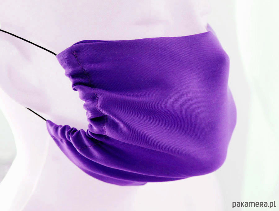 Maska zakładana jest na uszy dzięki elastycznym gumkom. Gumka w zamówionym modelu będzie płaska, a nie okrągła jak na zdjęciu.