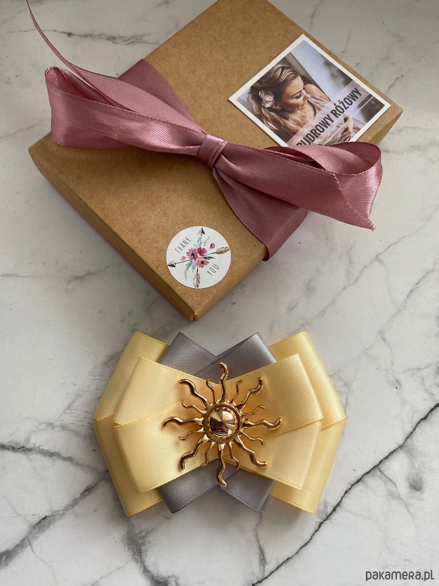Broszka wykonana z wysokiej jakości taśm i dodatków.
