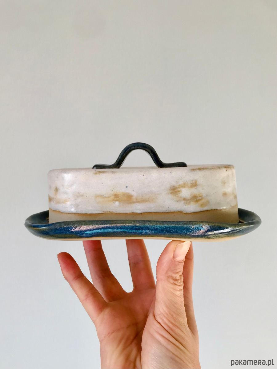 Maselniczka składa się z podstawki i kopułki z wygodnym uchwytem.