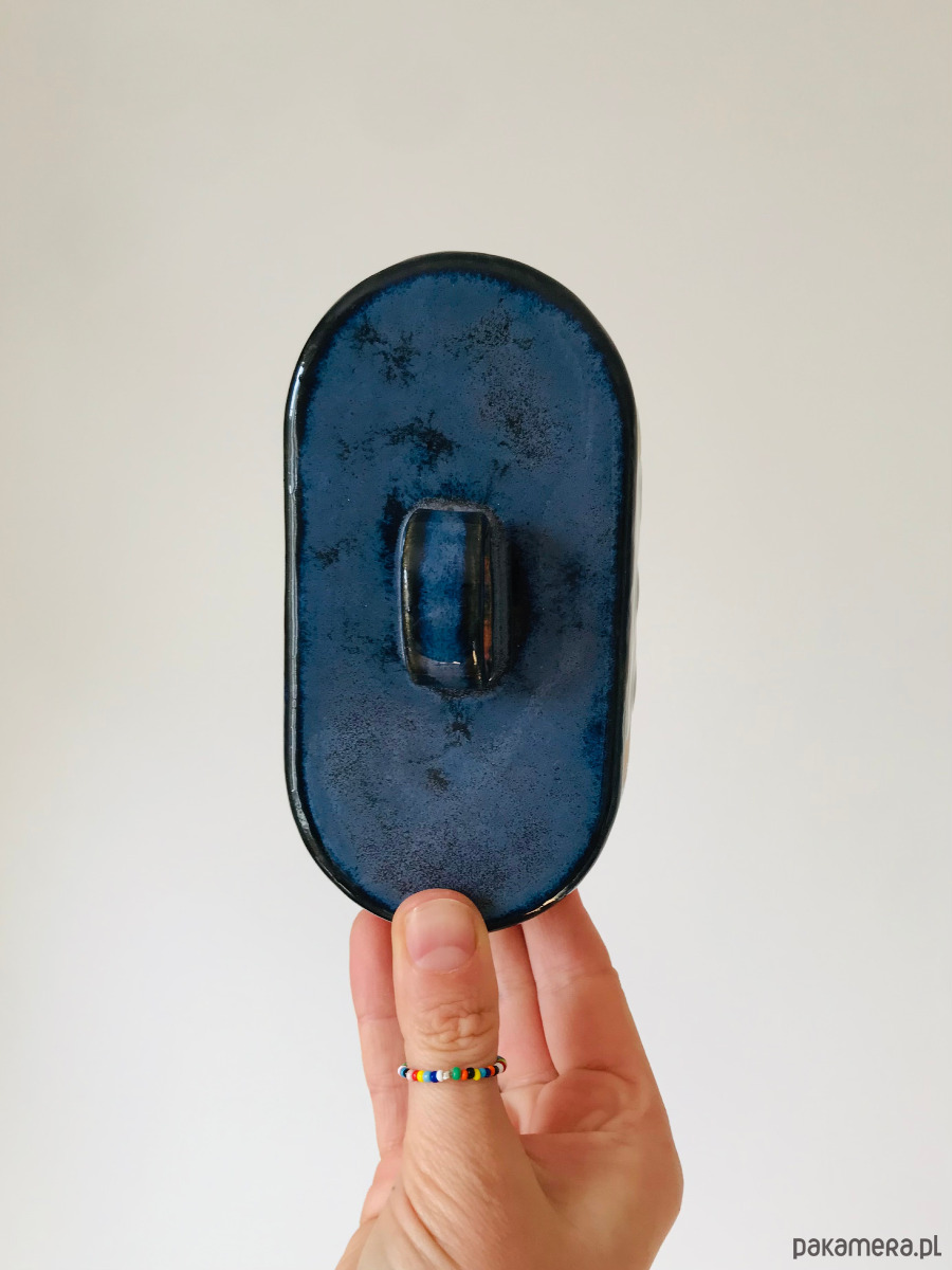 Maselniczka składa się z podstawki i kopułki z wygodnym uchwytem.
