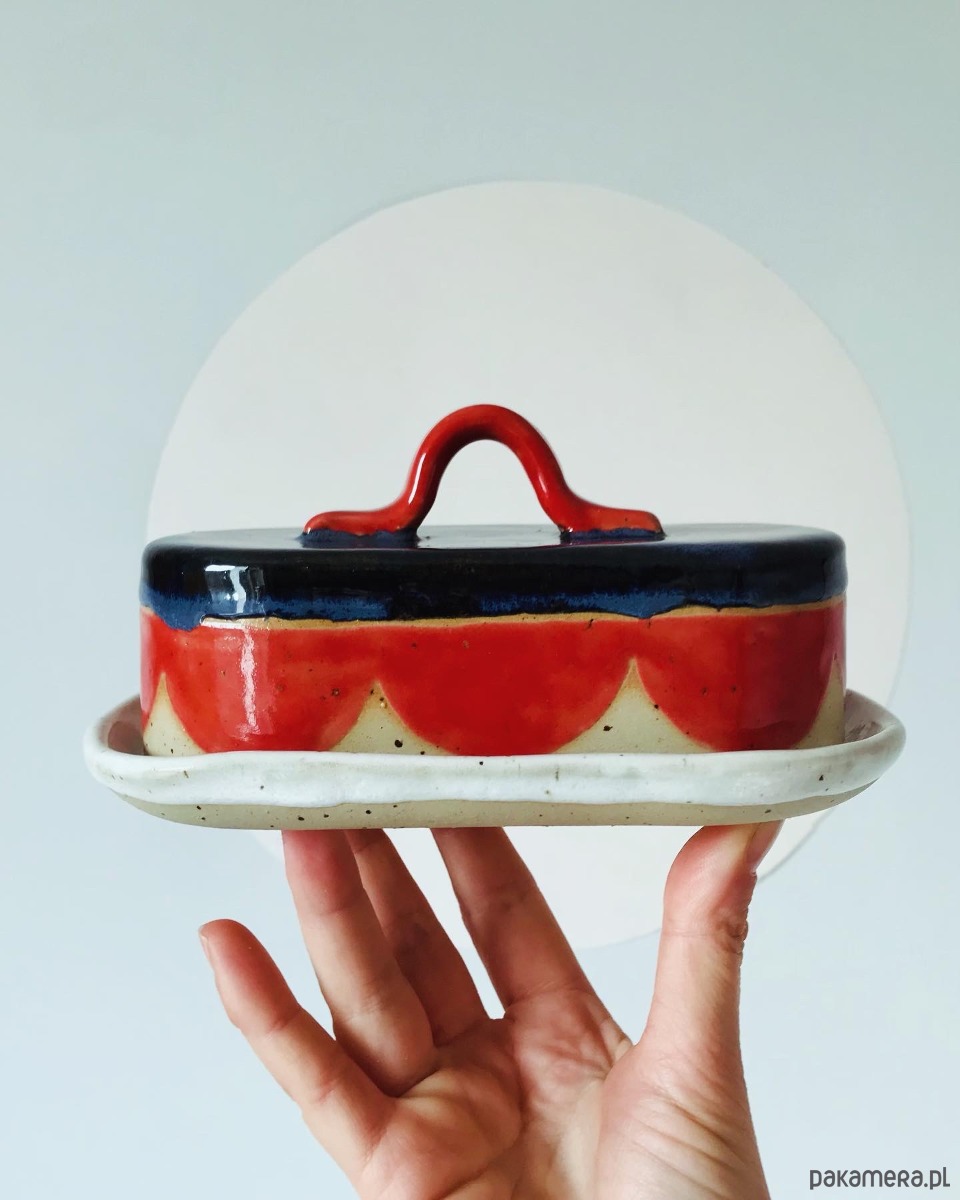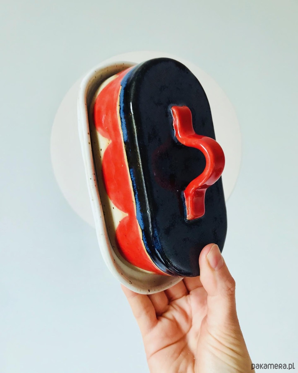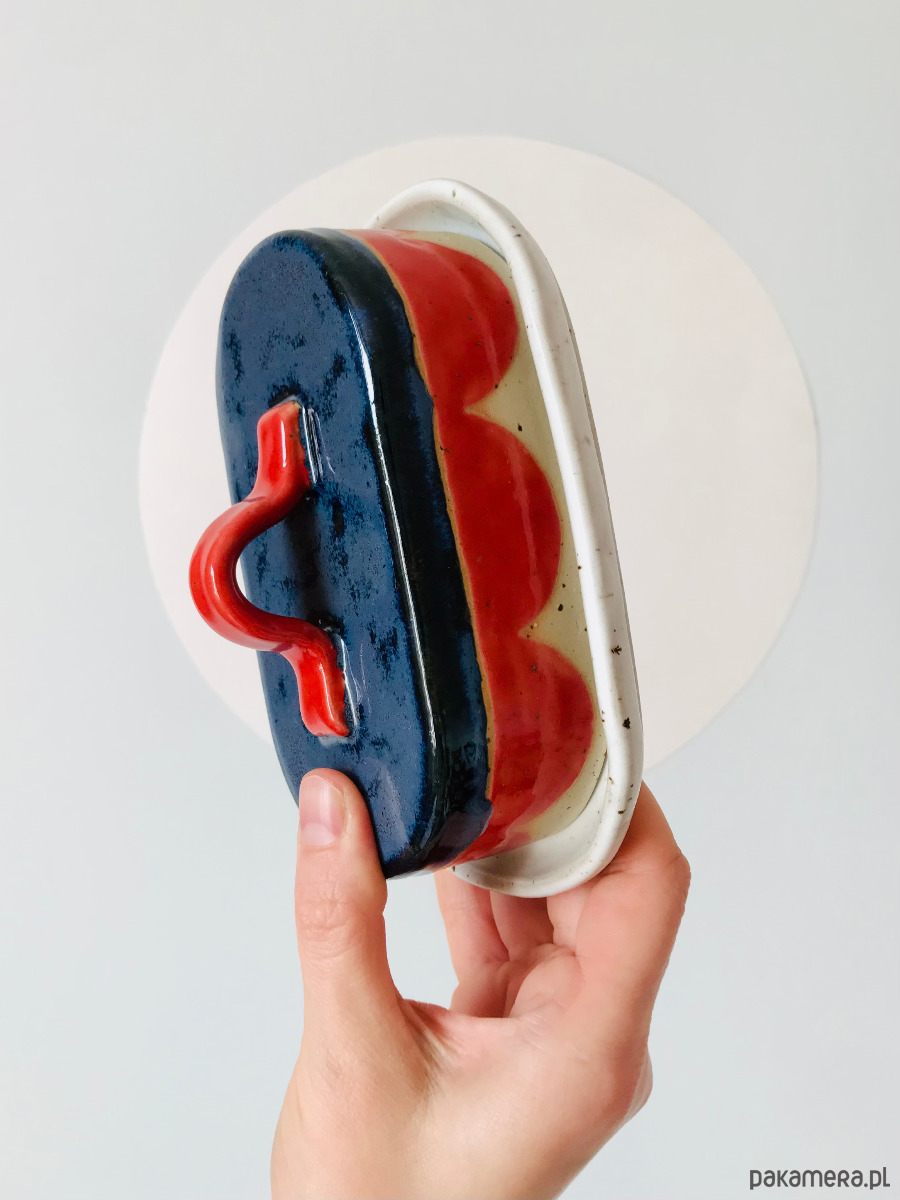 Maselniczka składa się z podstawki i kopułki z wygodnym uchwytem.