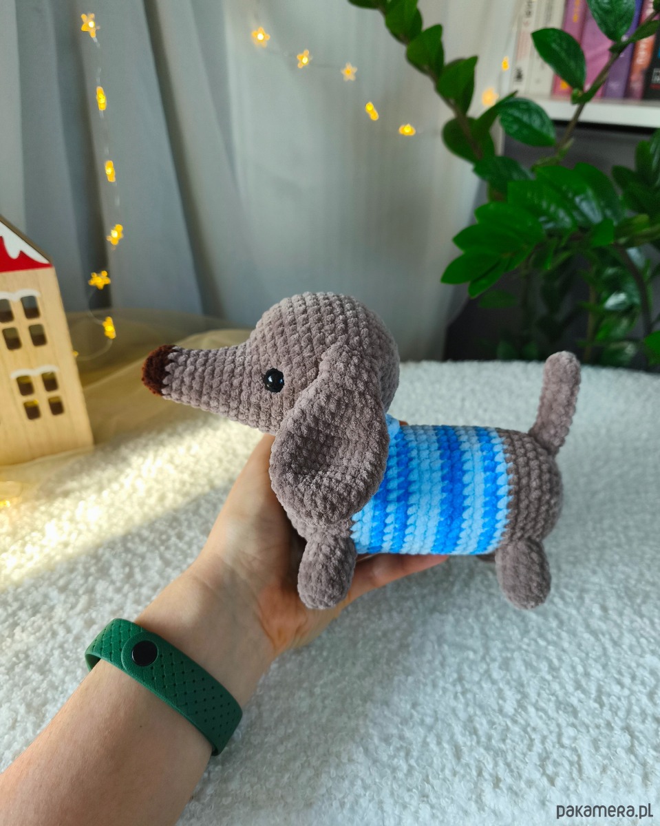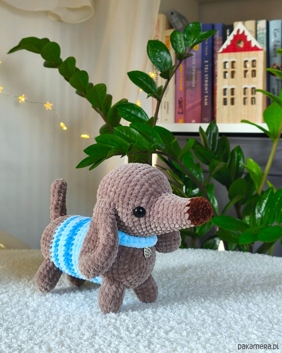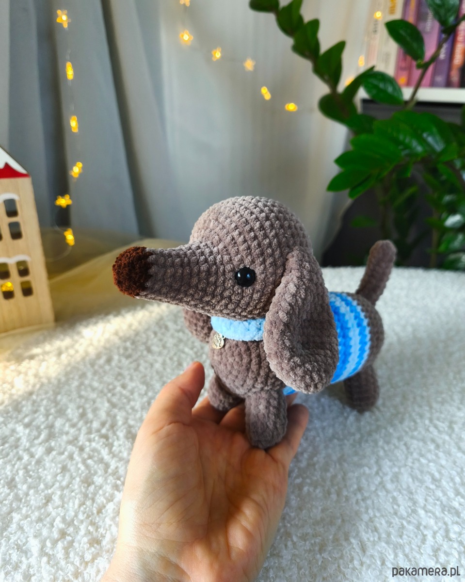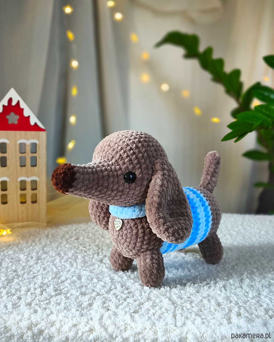 Szydełkowany jamniczek to ciepły prezent dla dzieci czy dorosłych. Z pewnością wywoła uśmiech na twarzach osób w każdym wieku!