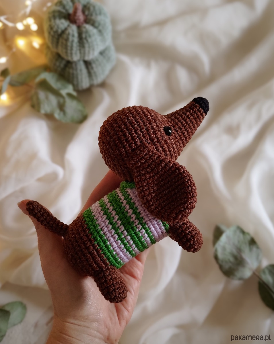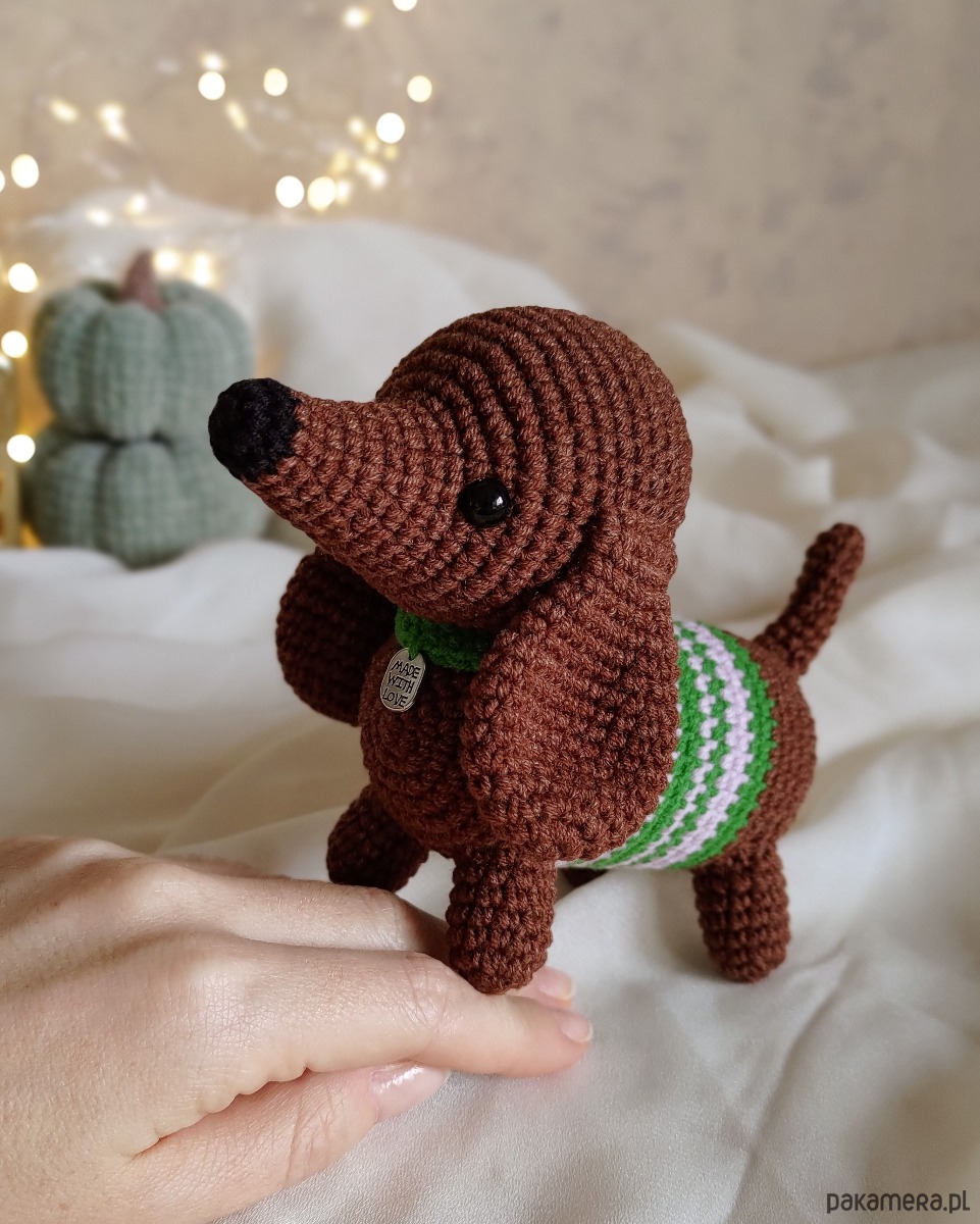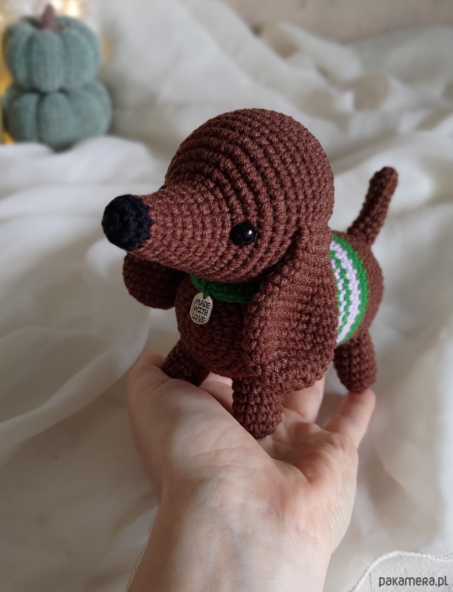 Szydełkowany jamniczek to ciepły prezent dla dzieci czy dorosłych. Z pewnością wywoła uśmiech na twarzach osób w każdym wieku!