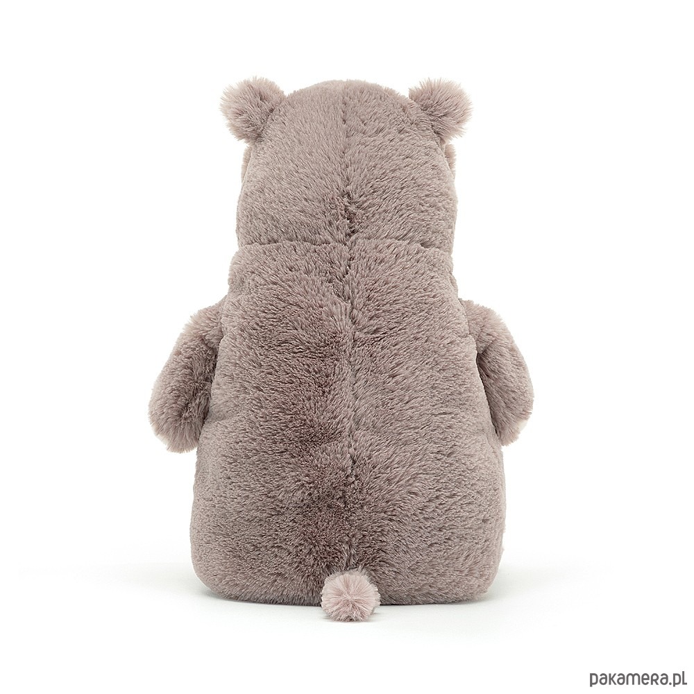 Urocza, miła i bardzo miękka przytulanka w kształcie hipopotama z bardzo miłym futerkiem.
