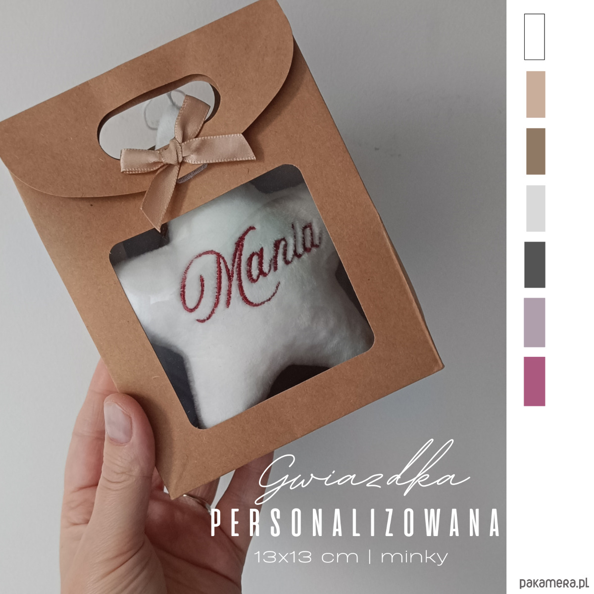 Gwiazdka szyta jest z tkaniny minky – miękkiej, delikatnej i miłej w dotyku.