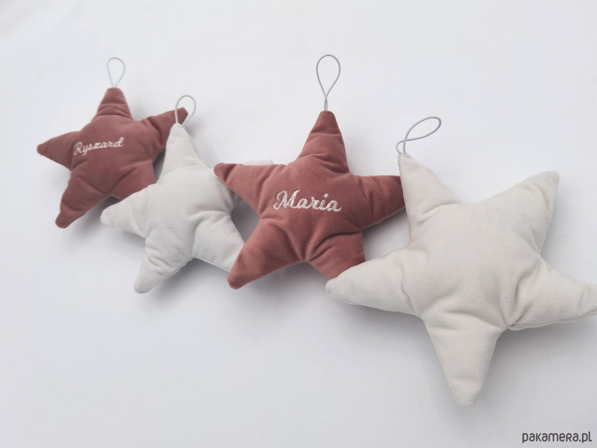 Urocza ozdoba w kształcie gwiazdki z haftem to wyjątkowy drobiazg dla najmłodszych.
