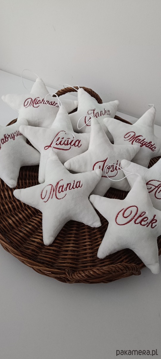 Na gwiazdce wykonujemy haft z dowolnym krótkim napisem, np.: