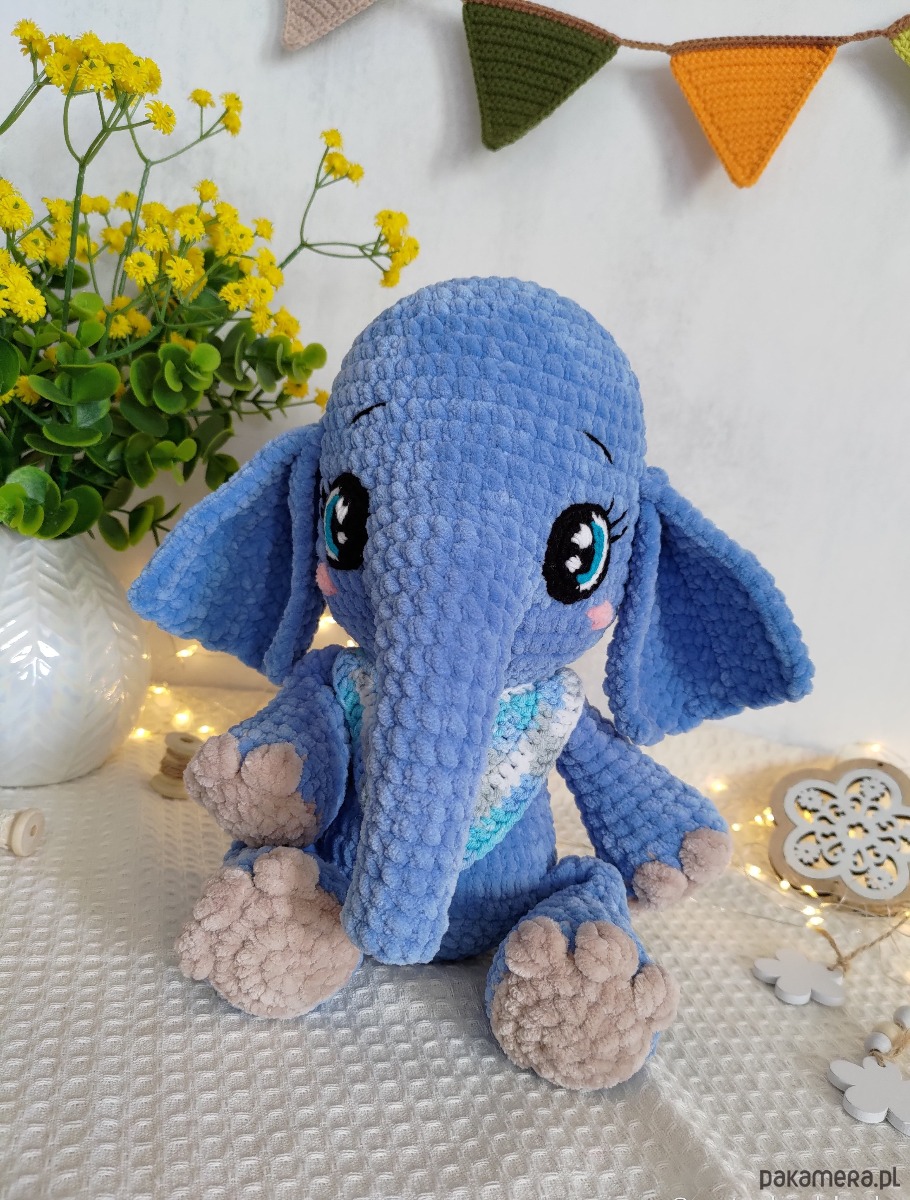 Szydełkowany słonik pluszowy będzie uroczym dodatkiem do każdej kolekcji dziecięcej!