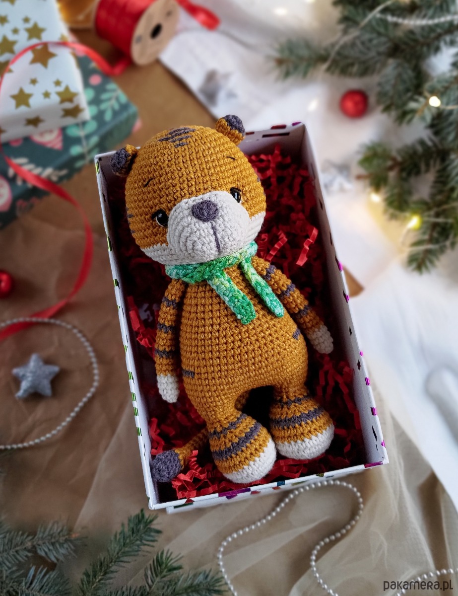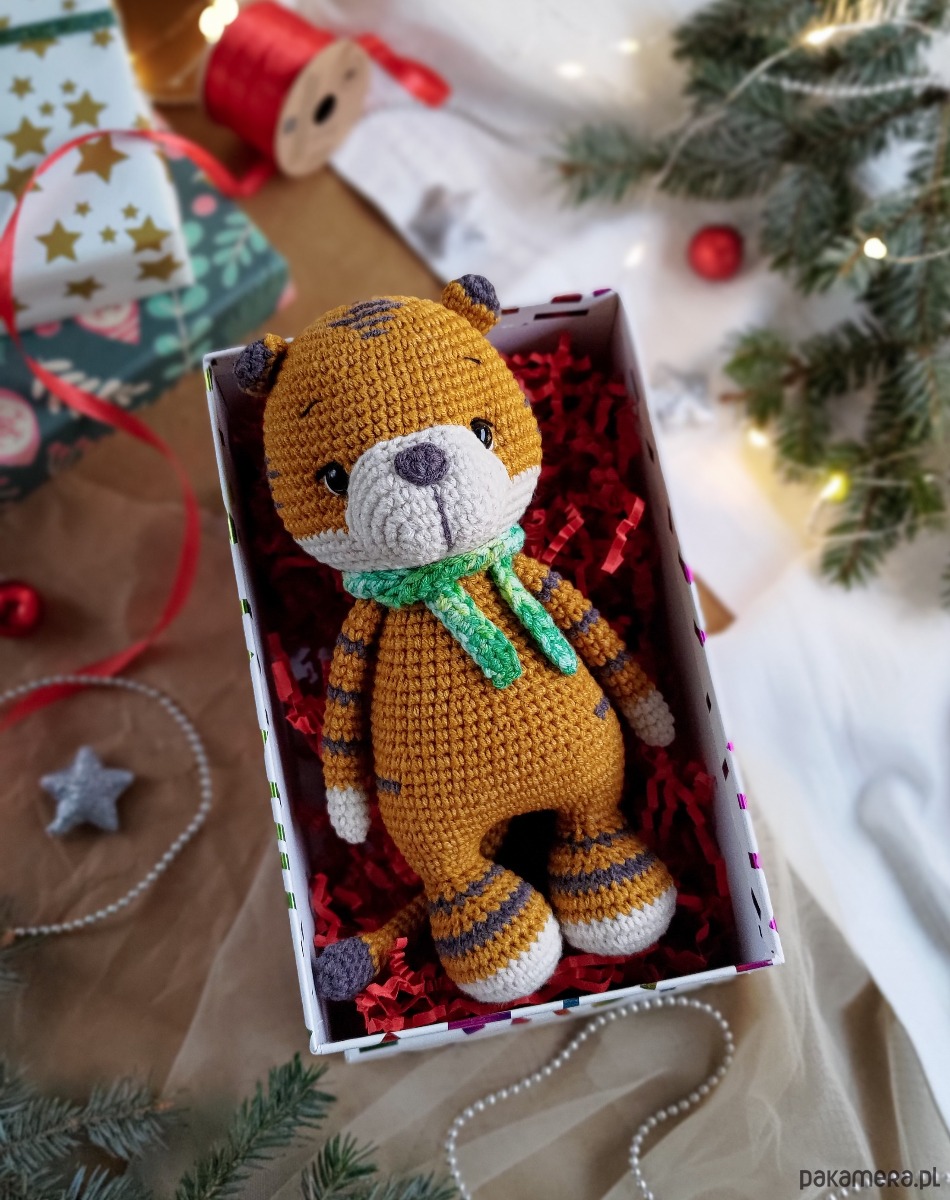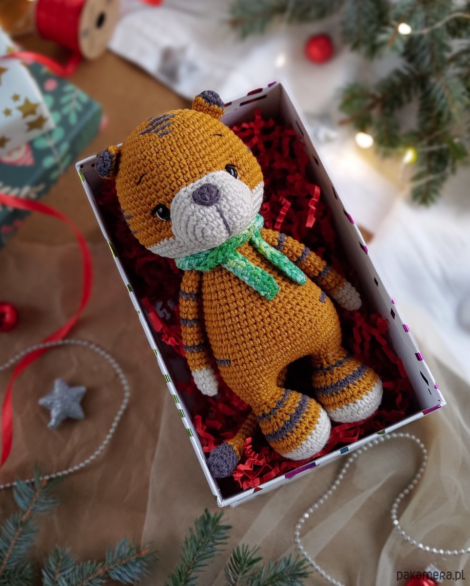 Maskotka tygrysek w pudełku, Prezent dla dziecka, Maskotka tygrys na szydełku