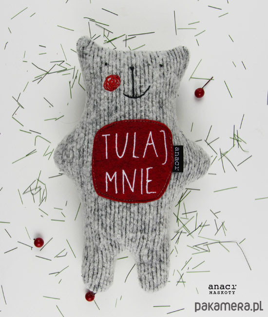 Mierzy sobie 25 cm., uszyty z dzianiny swetrowej, wypchany włókniną, zaopatrzony w filcową,