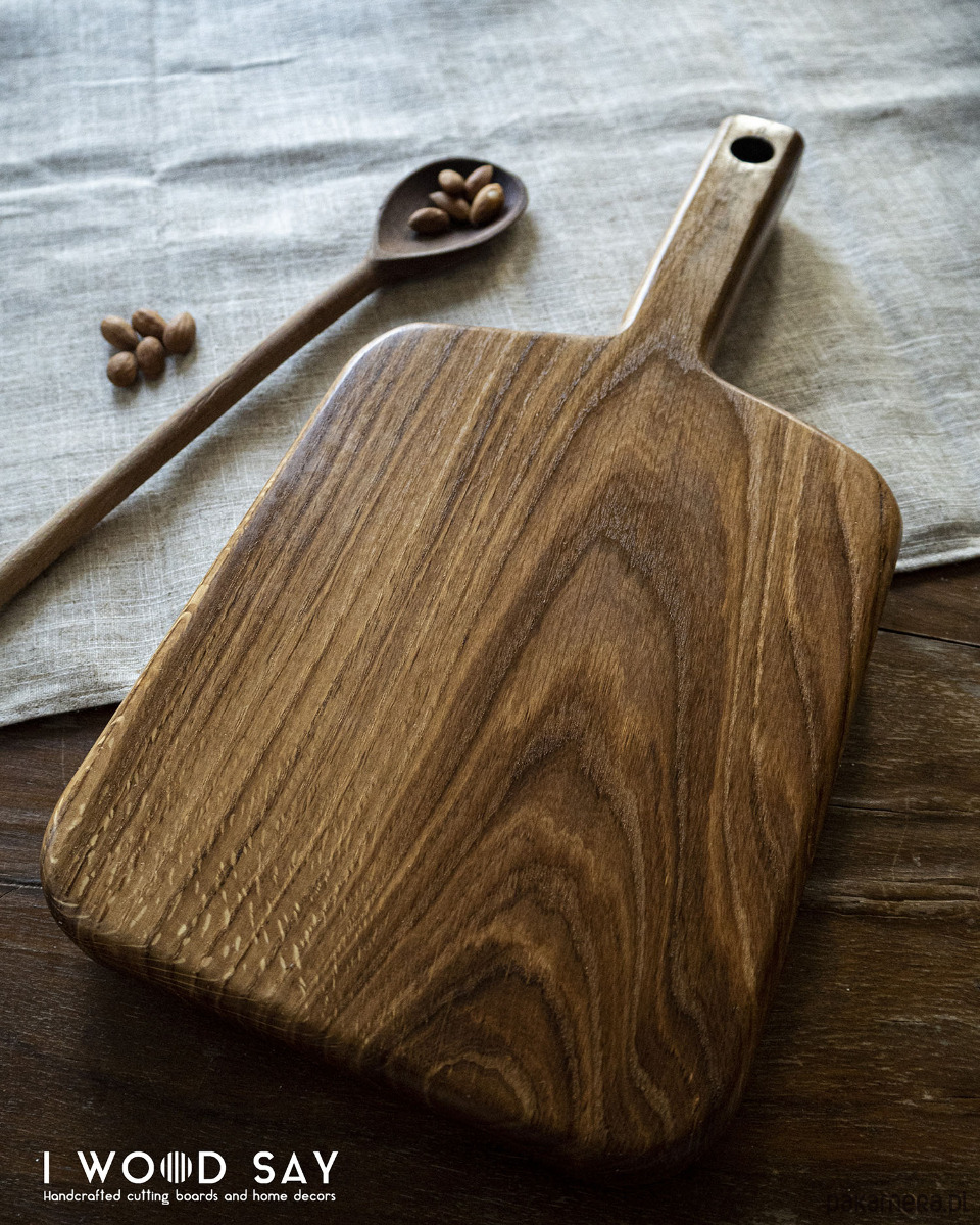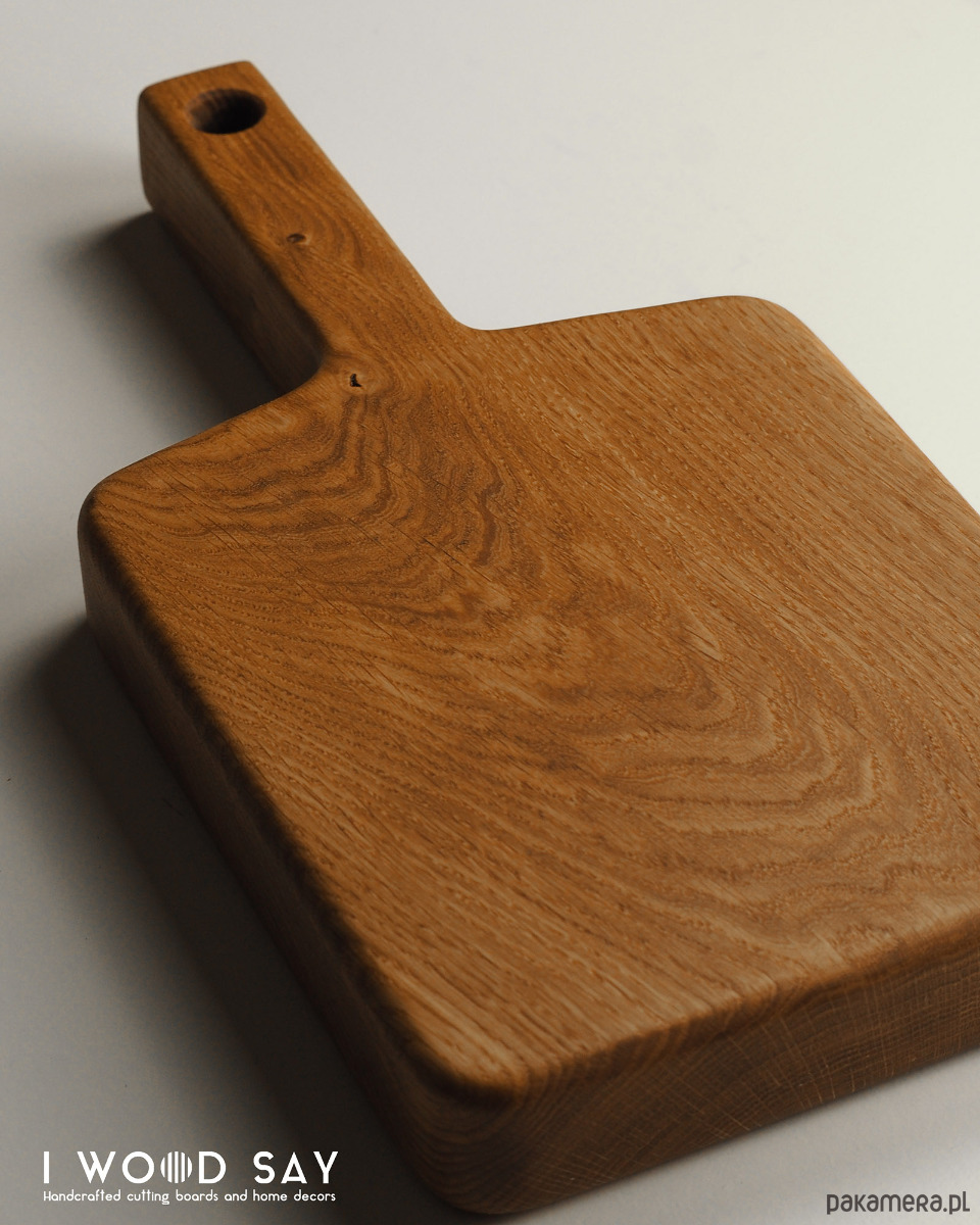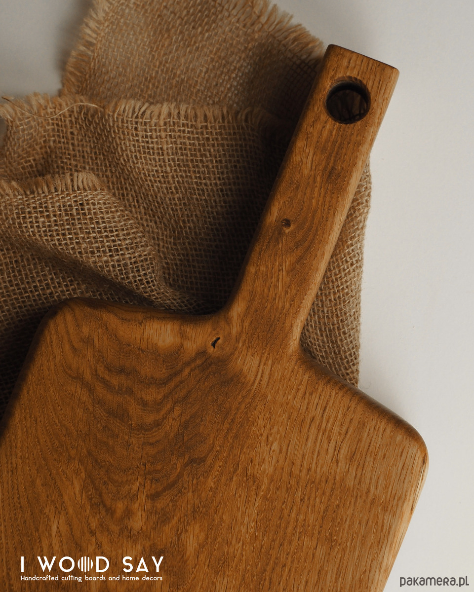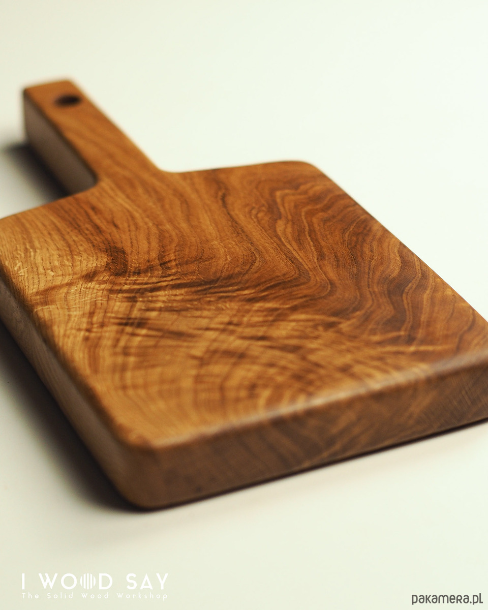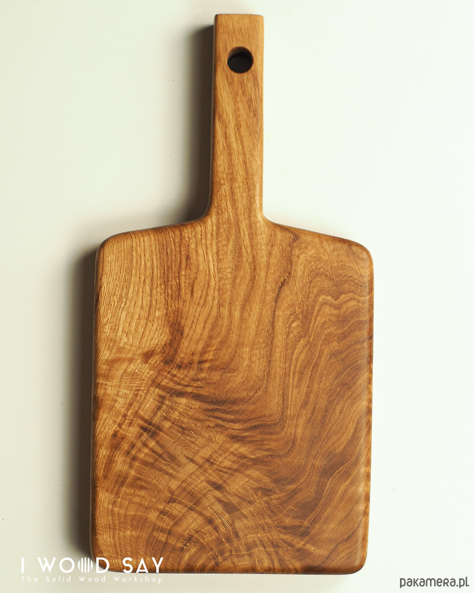 Masywna deska wykonana z litego drewna dębowego, w klasycznym kształcie z długim i wygodnym uchwytem.