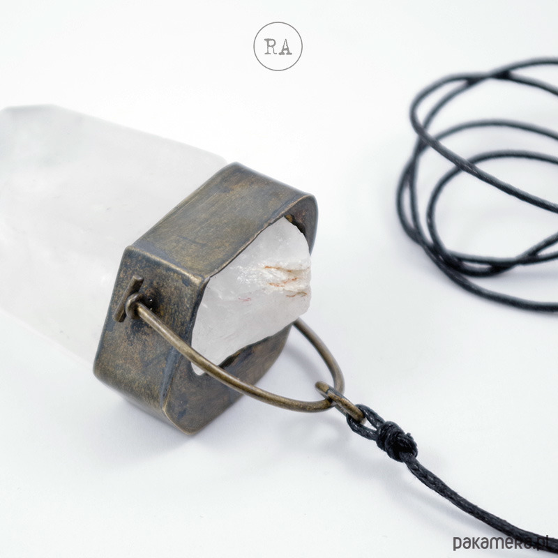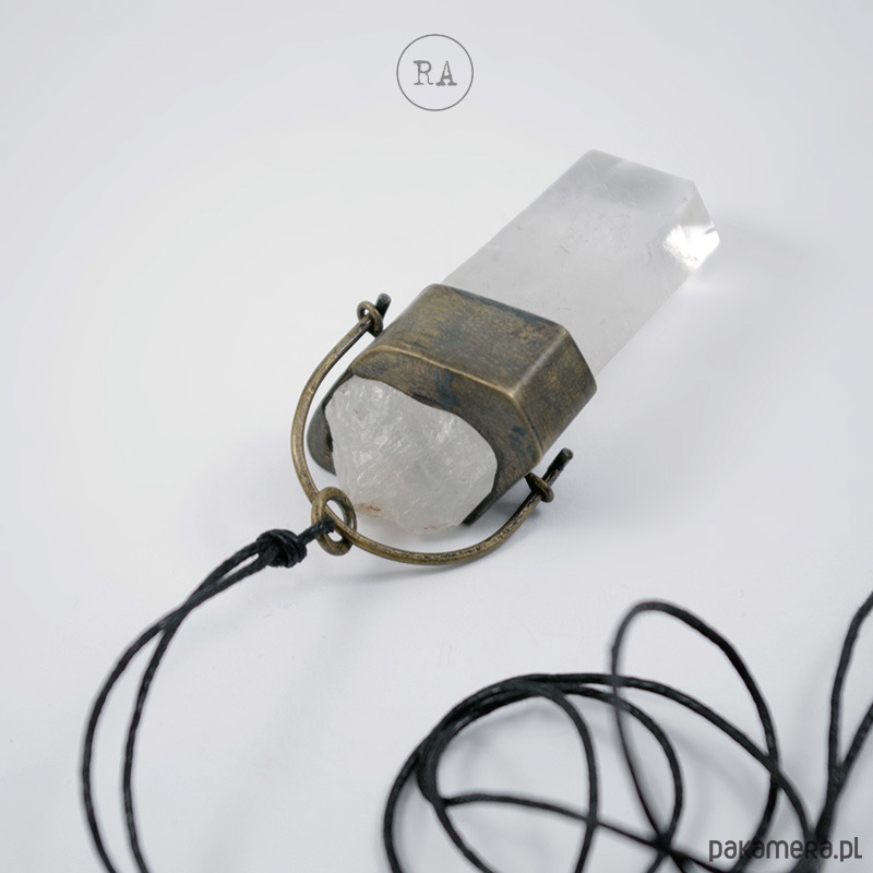 Wisior z naturalnym kryształem górskim, wykonany ręcznie,