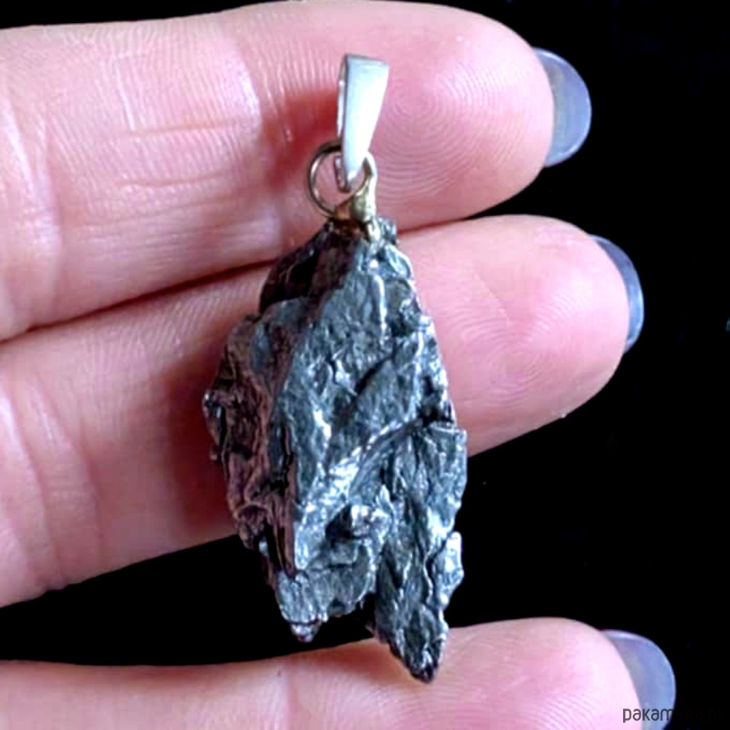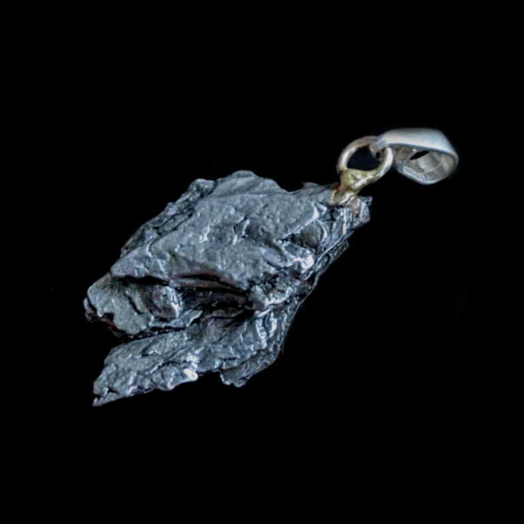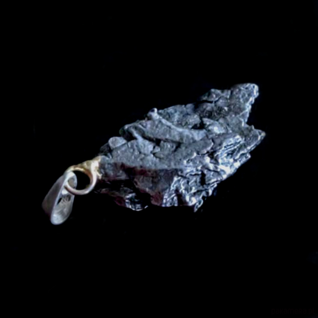 Wisior z meteorytem żelaznym Campo del Cielo, który znaleziono w 1576 roku w Argentynie. Krawatka srebro 925 Uniwersalny, dla niego lub dla niej. Wymiary 30 x 17 mm. Długość max 42 mm. Waga wisiora 14 g. Do meteorytu dołączona zostanie metryka z datą, miejscem spadku i wagą. Wisiorek zostanie zapakowany w ozdobne pudełeczko.