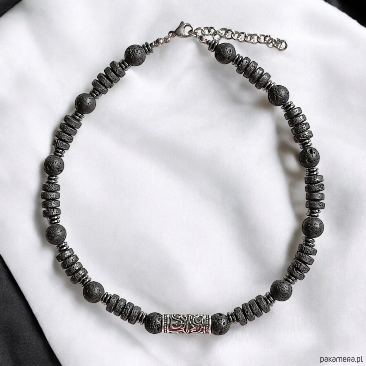 Masywny naszyjnik - kolia : lawa i stal szlachetna