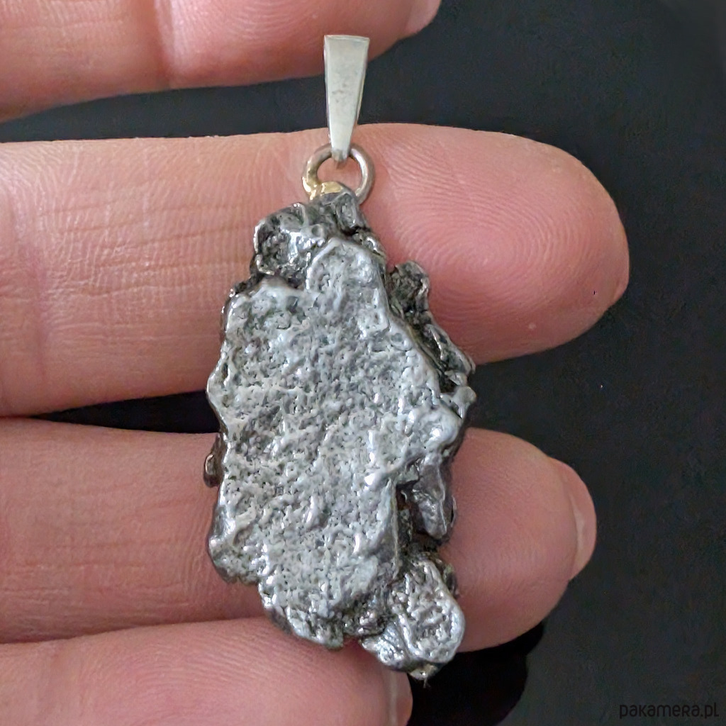 Wisior z meteorytem żelaznym Campo del Cielo, który znaleziono w 1576 roku w Argentynie. Krawatka srebro 925 Uniwersalny, dla niego lub dla niej. Wymiary 30 x 18 mm. Długość max 42 mm. Waga wisiora 14 g. Do meteorytu dołączona zostanie metryka z datą, miejscem spadku i wagą. Wisiorek zostanie zapakowany w ozdobne pudełeczko.
