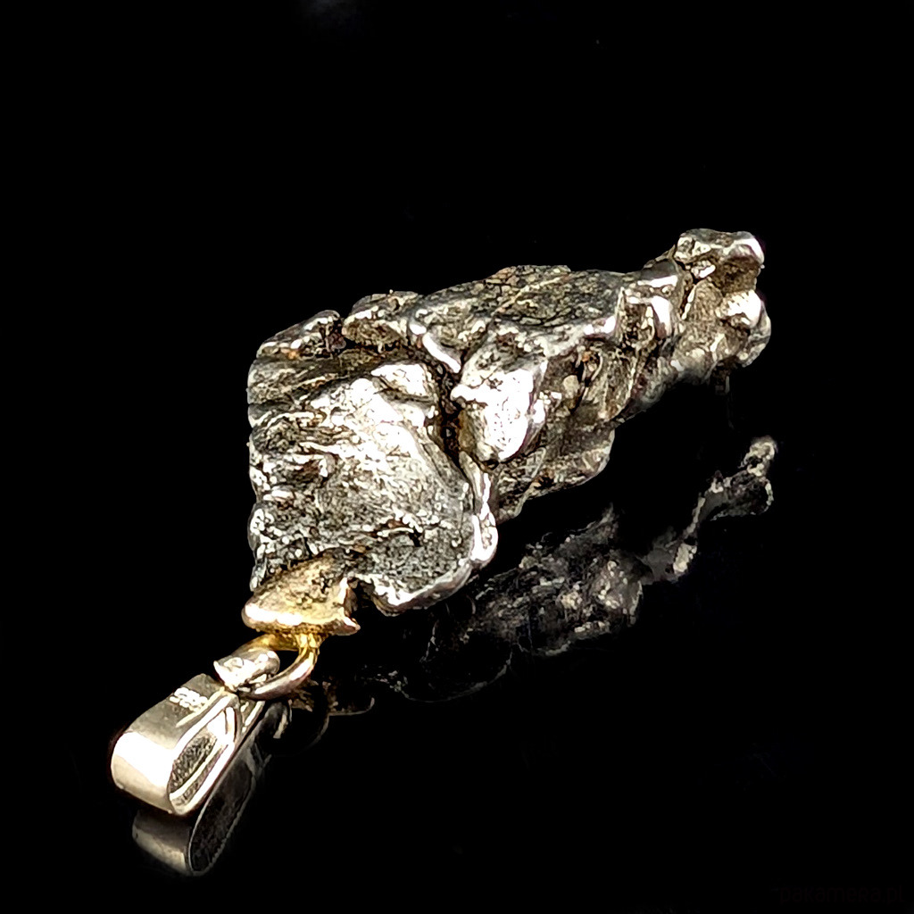 Wisiorek z meteorytem żelaznym Campo del Cielo, który znaleziono w 1576 roku w Argentynie. Krawatka srebro 925 Uniwersalny, dla niego lub dla niej. Wymiary 28 x 18 mm. Długość max 35 mm. Waga wisiora 11 g. Do meteorytu dołączona zostanie metryka z datą, miejscem spadku i wagą. Wisiorek zostanie zapakowany w ozdobne pudełeczko.