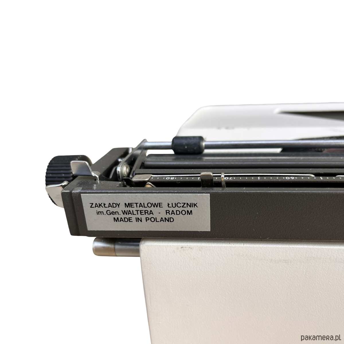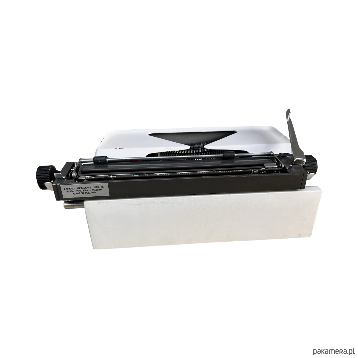Model ceniony za niezawodność, solidną konstrukcję i płynną pracę klawiszy. Wyposażona w polską czcionkę (z polskimi znakami diakrytycznymi) – gotowa do pisania po włożeniu taśmy barwiącej.