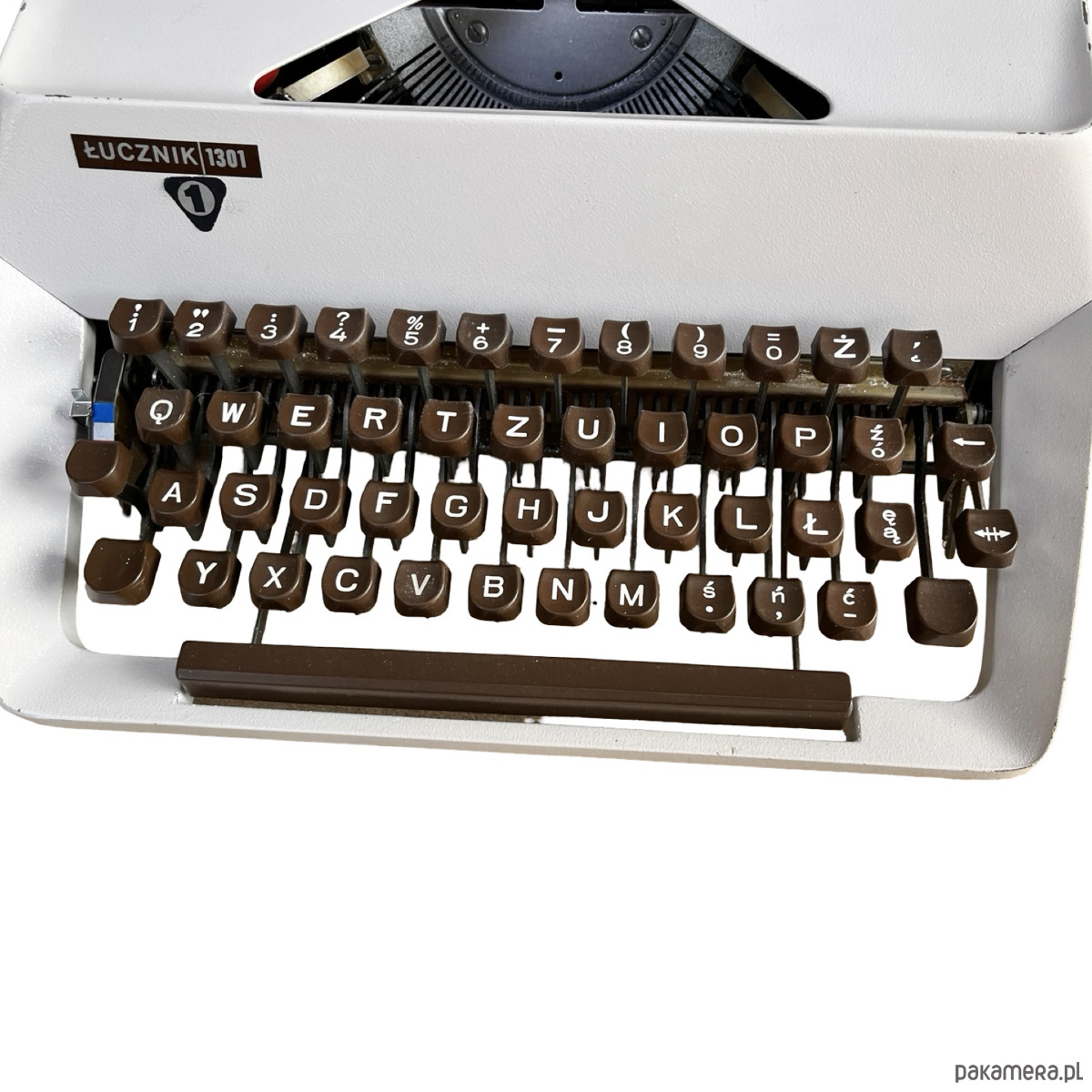 Klasyczna maszyna do pisania Łucznik 1303, wyprodukowana w Polsce w latach 70. XX wieku.