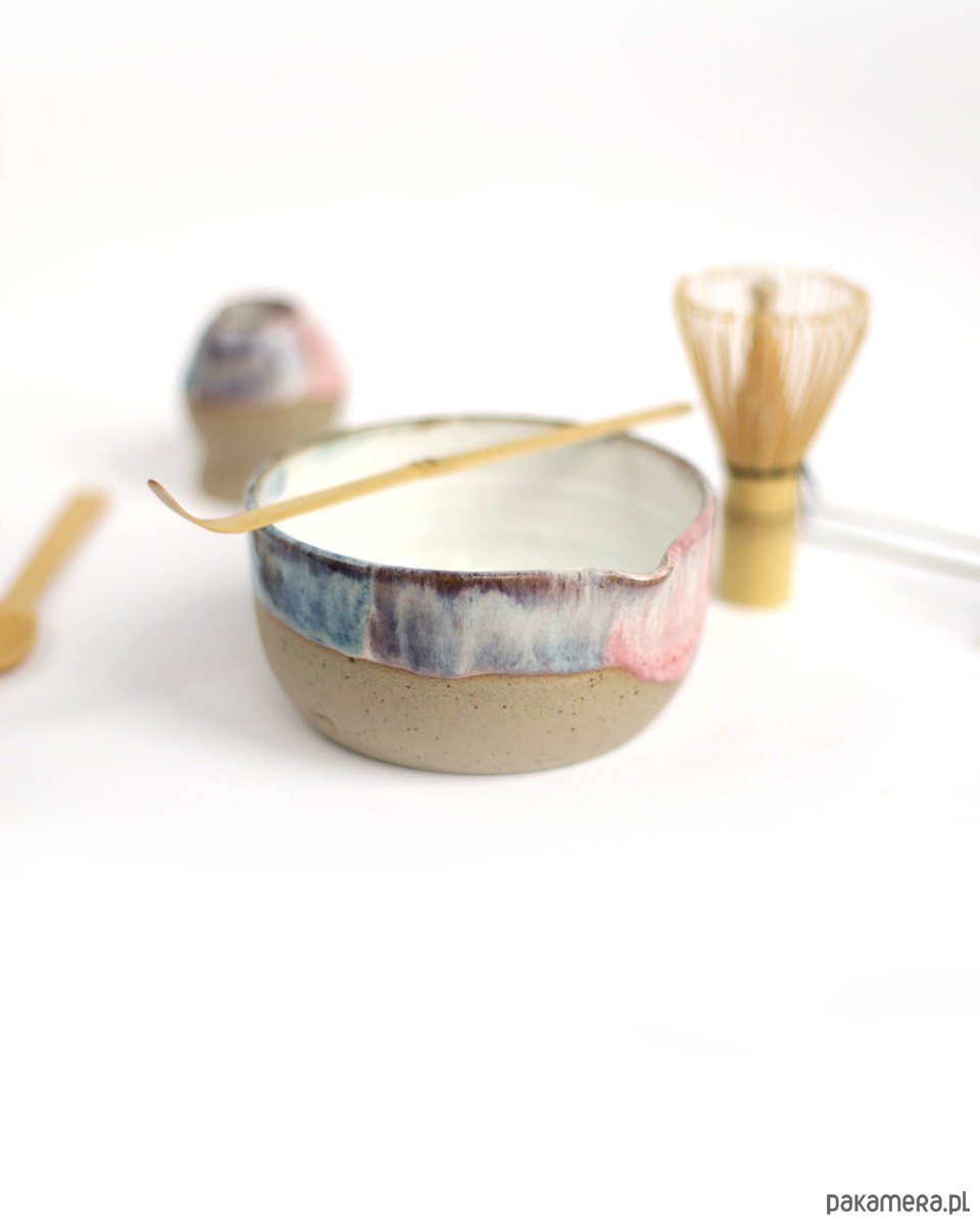 ∙ chasen (ok. 10 cm) – tradycyjna bambusowa miotełka do spieniania matchy, niezbędna do uzyskania idealnej, aksamitnej pianki.