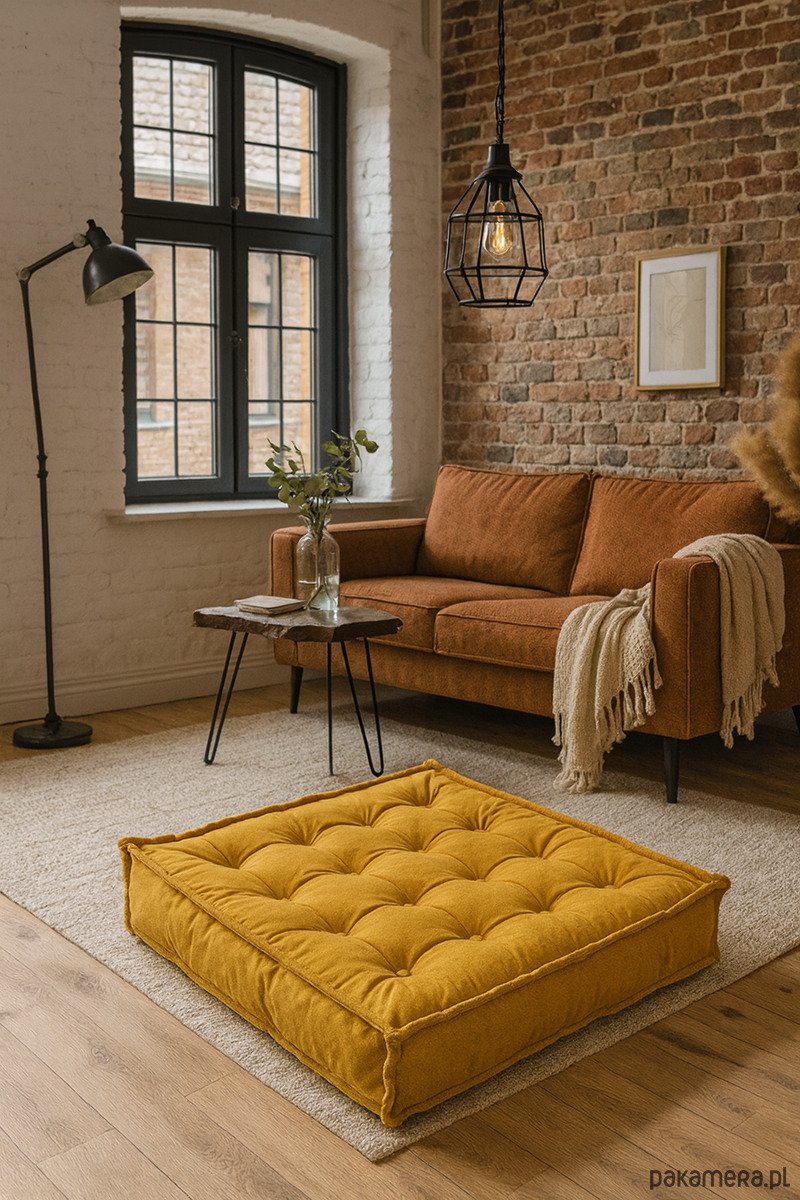 Materac francuski Siedzisko futon Poducha Pikowana kolor Musztarda