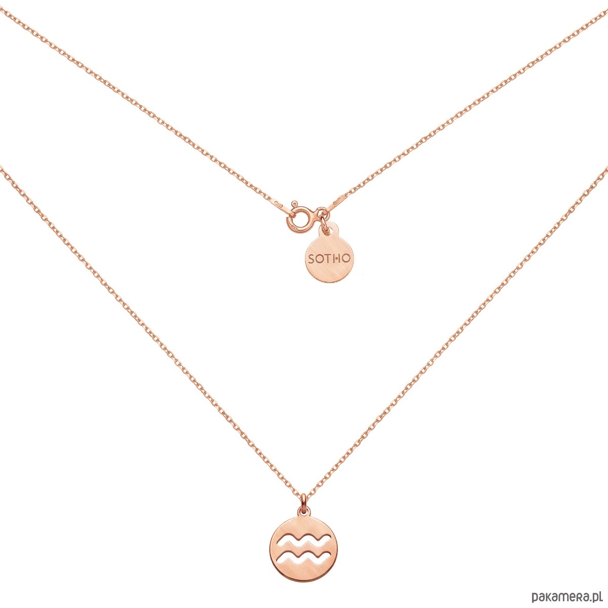 Matowy naszyjnik z różowego złota z zodiakiem Wodnika