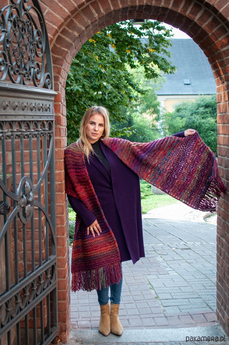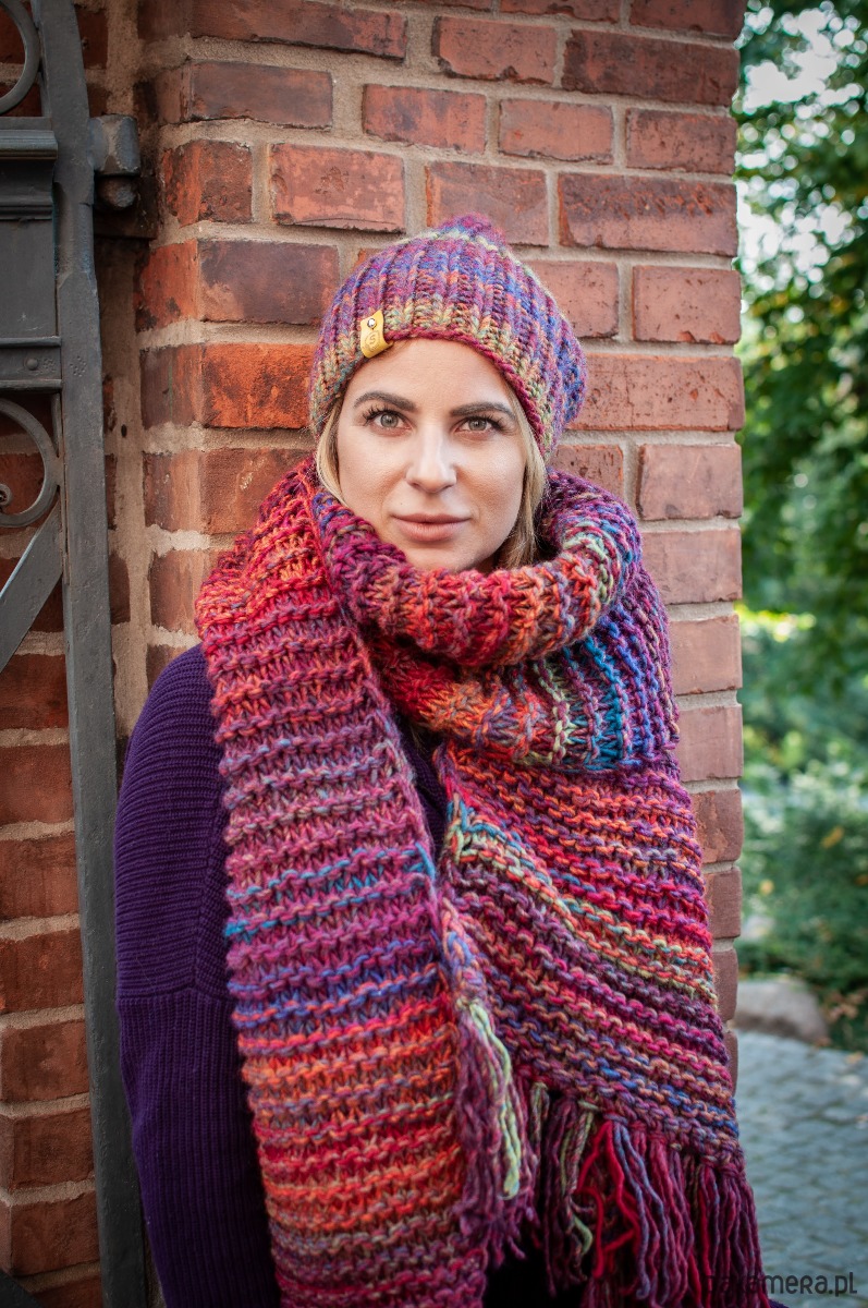 MAXCOLOR duży szal robiony ręcznie "wesoły melanż"