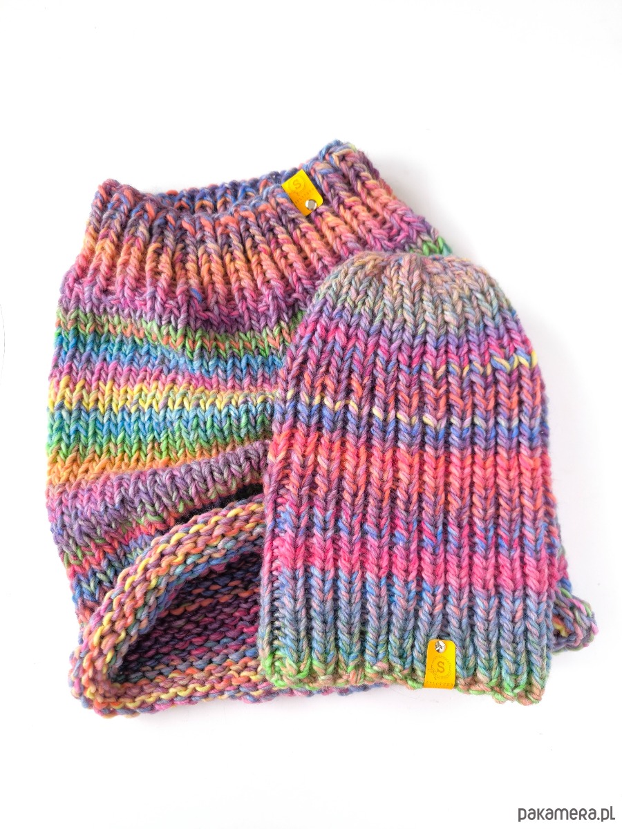 Dwuczęściowy komplet zimowy :komin i czapka na drutach