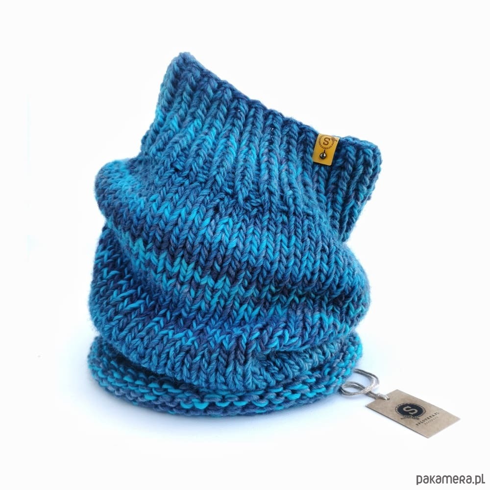 Czapka i komin są proste w formie za to wyróżniają je oryginalne przejścia kolorystyczne.