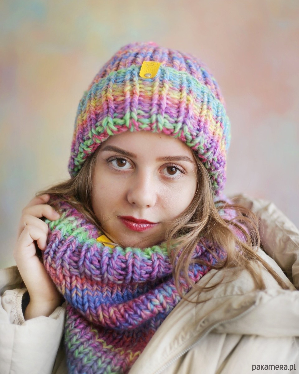 Zimowa czapka w jasnych kolorach cukierkowych
