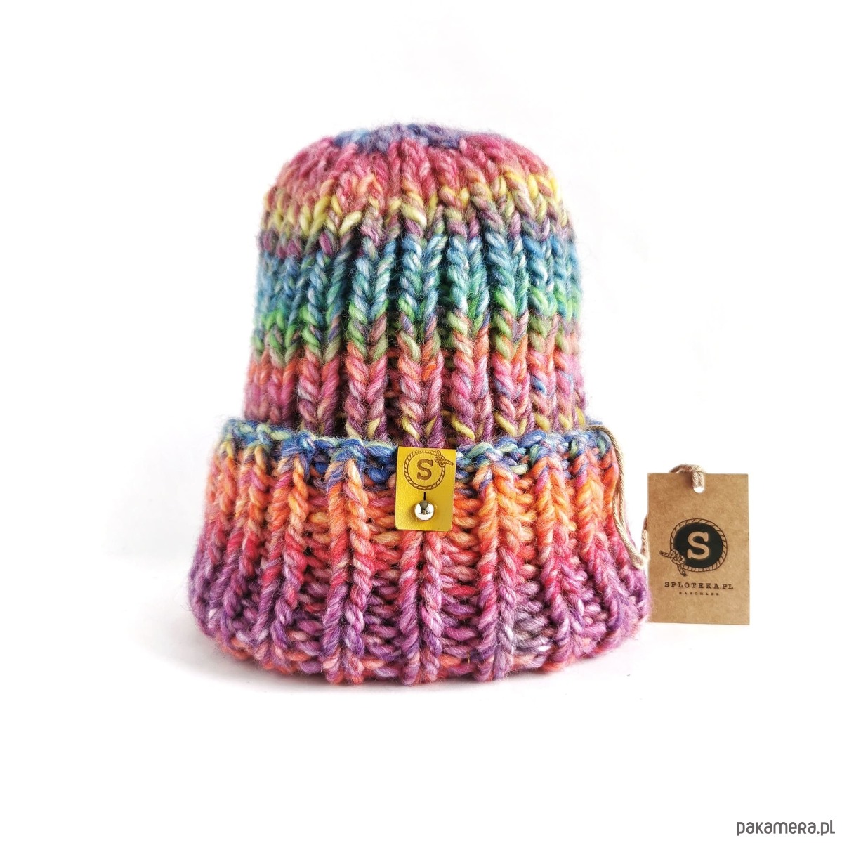 Czapka jest zrobiona grubym elastycznym splotem, dzięki czemu dopasowuje się do obwodu głowy,