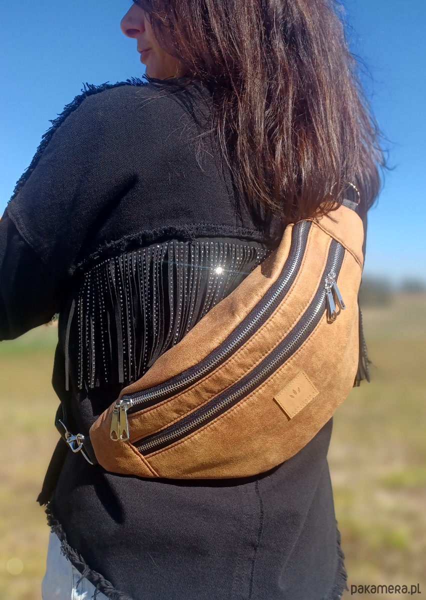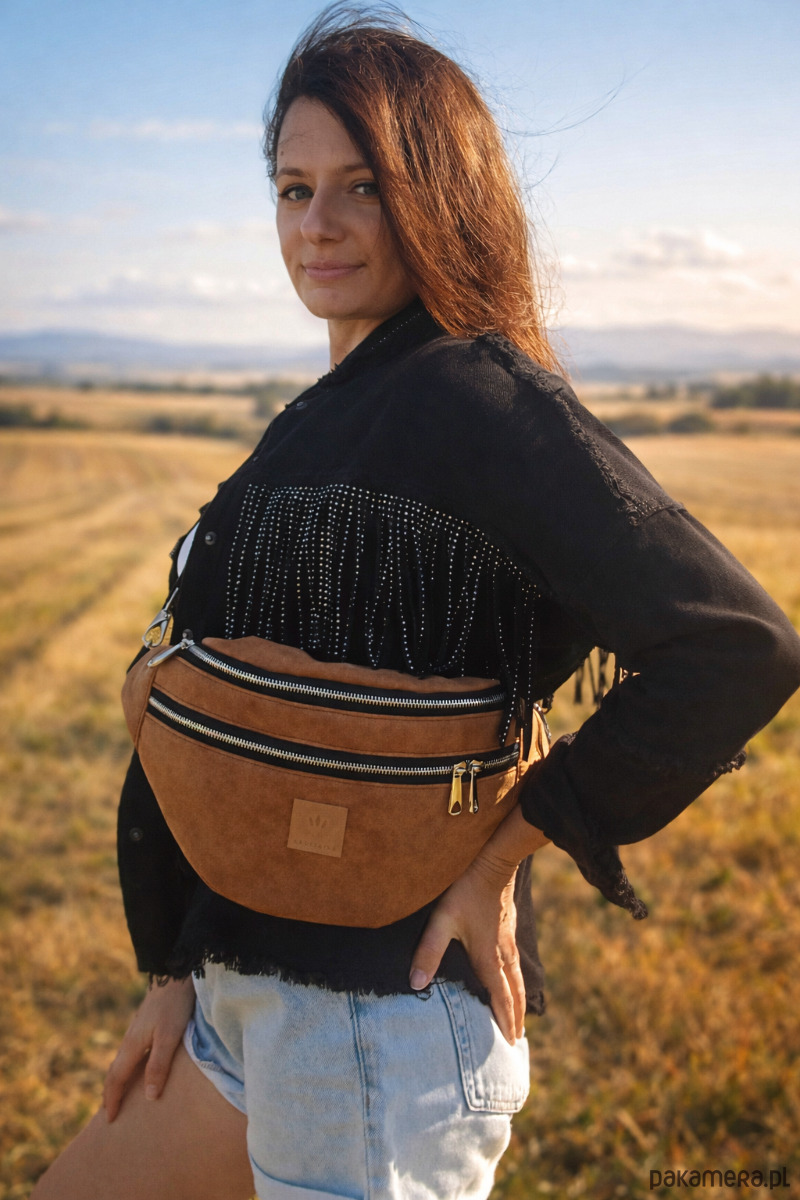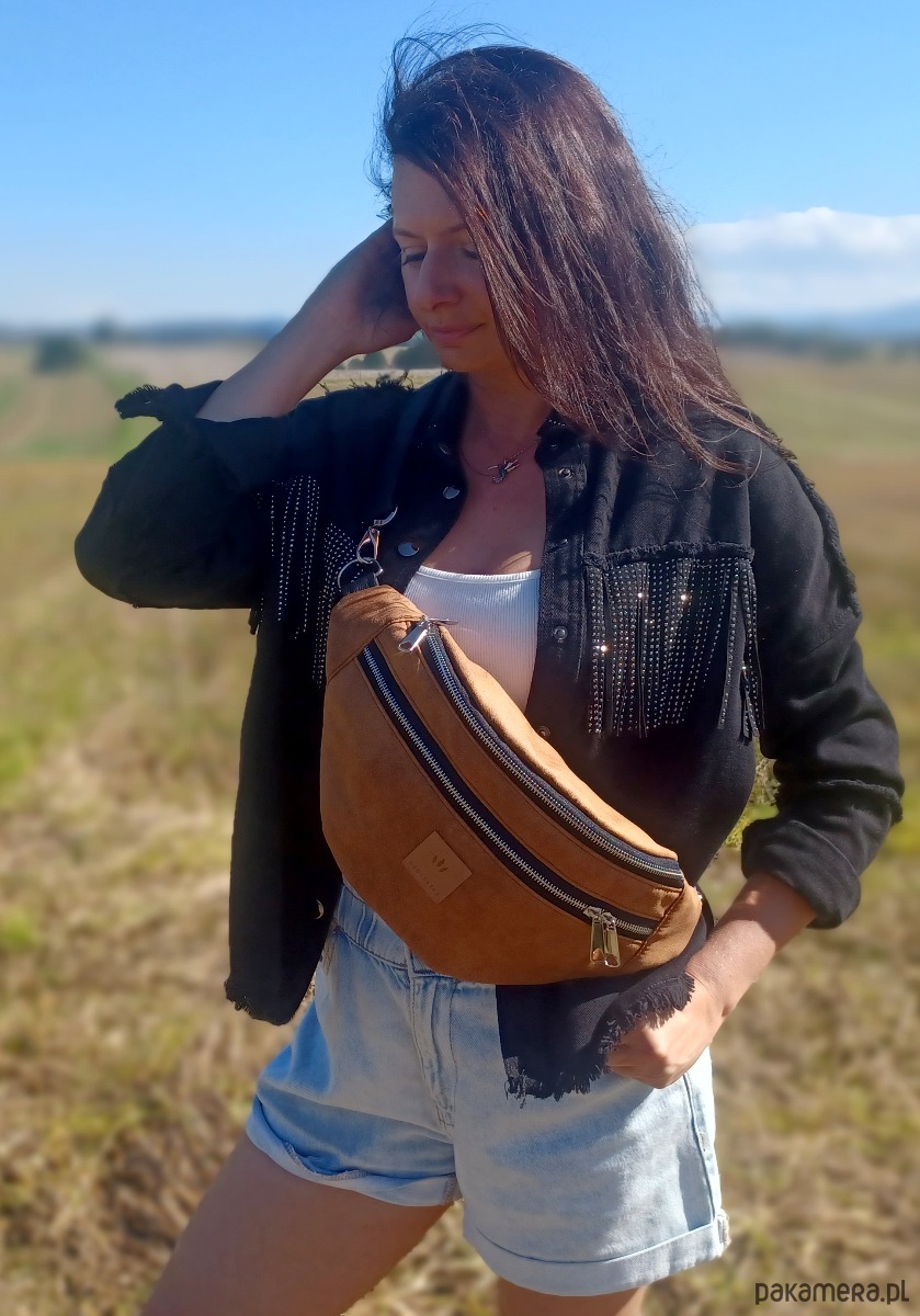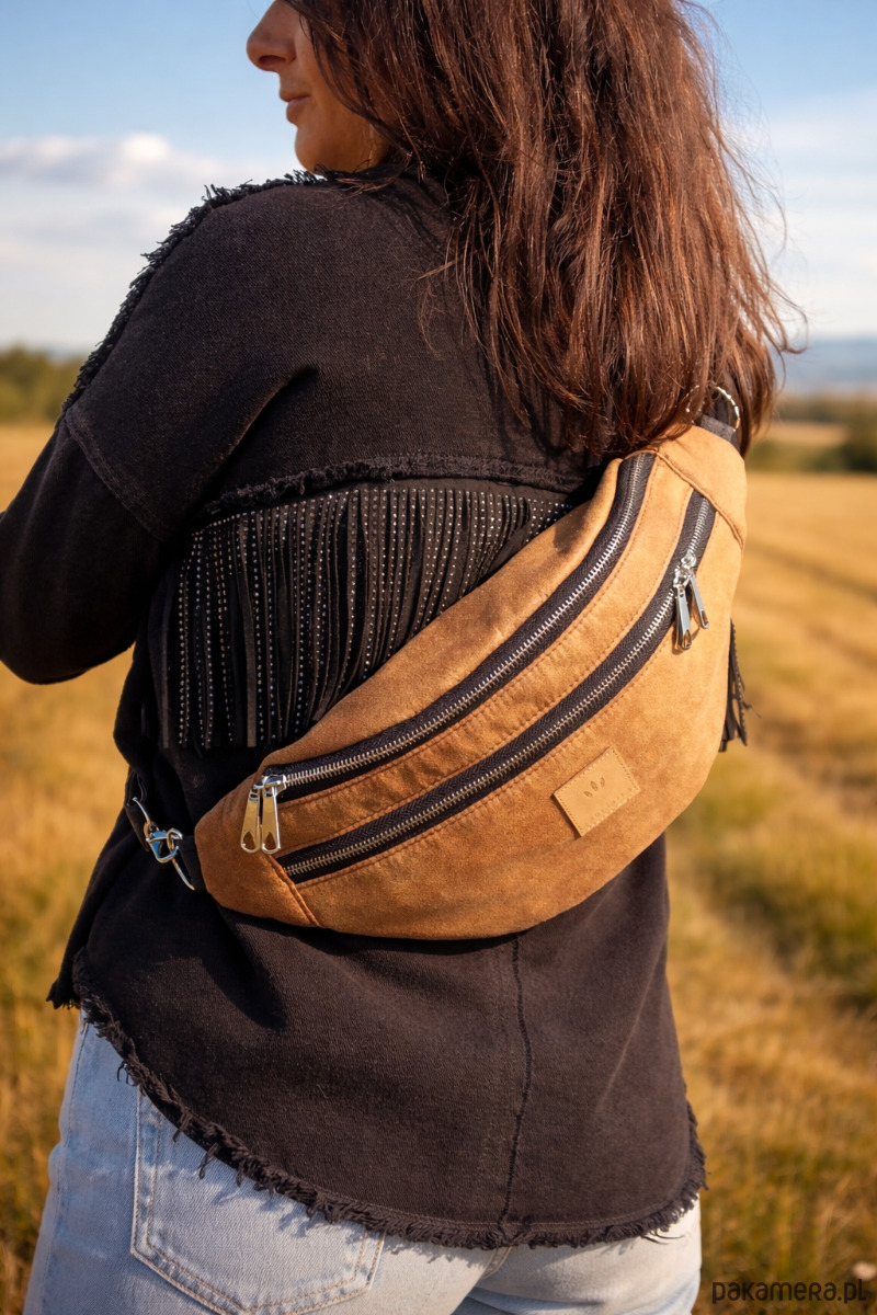 Bardzo duża nerka torebka damska z wysokiej jakości brązowego nubuku.