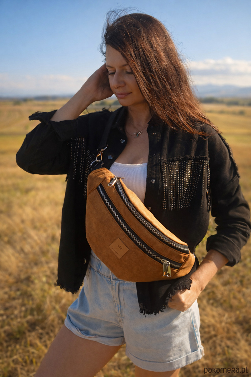 Saszetka pomieści wszystkie niezbędne drobiazgi takie jak klucze, telefon, mały portfel czy szminkę, ale również większe przedmioty. Jest niezwykle pojemna.