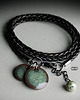 Efektowna bransoletka wykonana z rzemienia jubilerskiego, elementów w kolorze ciemnego srebra i ręcznie wykonanych ceramicznych zawieszek, szkliwionych brązowym i szarozielonym szkliwem, Obwód regulowany, długość elementu ceramicznego ok 1,8cm i 1,5. Polecam