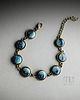 Efektowna bransoletka wykonana z ceramicznych elementów, szkliwionych zielonym szkliwem, elementów metalowych w kolorze starego złota Obwód regulowany, średnica elementu ceramicznego około 10mm . Polecam