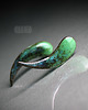 Ceramiczne podłużne kolczyki, ręcznie wykonane z delikatnej gliny kamionkowej, jednostronnie szkliwione mieszanką zielonych szkliw z efektem plamek, na antyalergicznych sztyftach w kolorze srebrnym.długość ok 2,8cm. Polecam