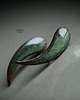 Ceramiczne podłużne kolczyki, ręcznie wykonane z delikatnej gliny kamionkowej, jednostronnie szkliwione mieszanką zielonych szkliw z efektem plamek, tył matowy czekoladowobrązowy na antyalergicznych sztyftach w kolorze srebrnym.długość ok 2,8cm. Polecam