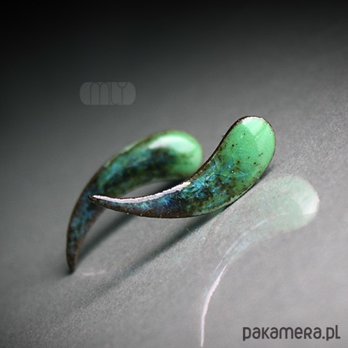 Ceramiczne podłużne kolczyki, ręcznie wykonane z delikatnej gliny kamionkowej, jednostronnie szkliwione mieszanką zielonych szkliw z efektem plamek, na antyalergicznych sztyftach w kolorze srebrnym.długość ok 2,8cm. Polecam