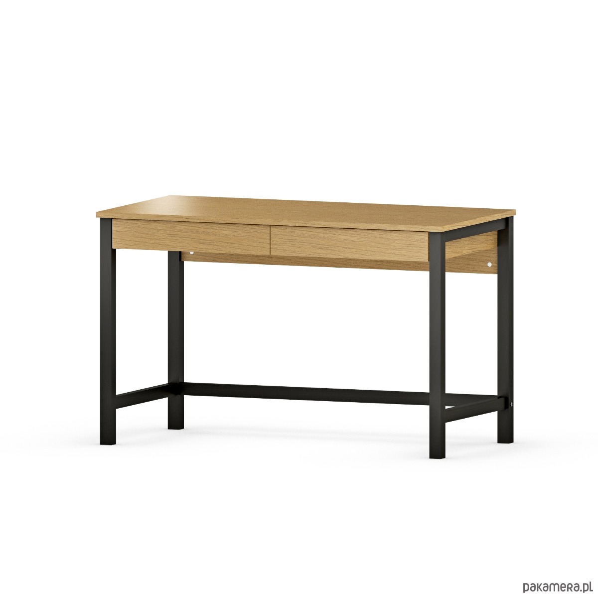Biurko DES5/2-PRO o wymiarze 120x60 z dwoma szufladami na całej szerokości. Blat wraz z całym górnym korpusem został wykonany z płyty fornirowanej. Stelaż to drewno lite, sosnowe, wykończonym kolorowym lakierem.