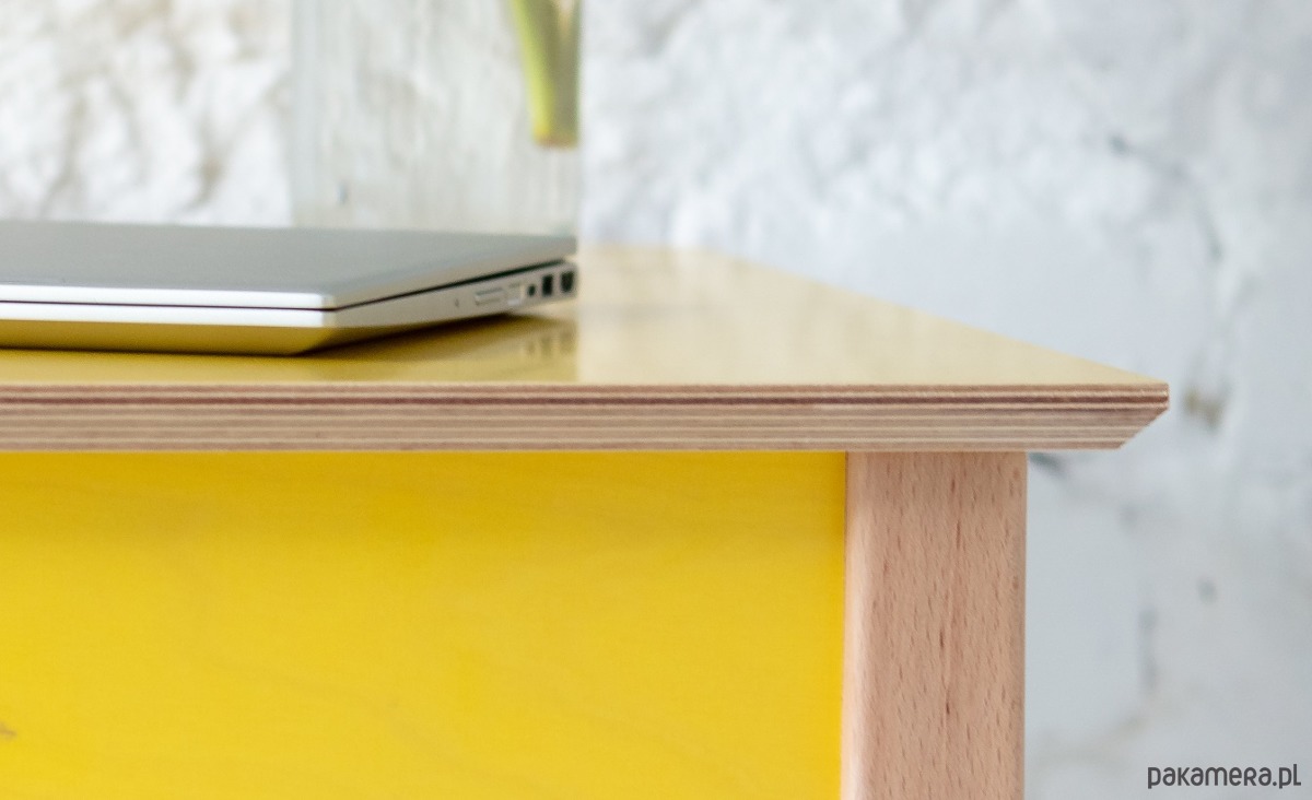 Minimalistyczne, funkcjonalne biurko z dyskretną szufladą idealnie pasuje do domowego biura. Wykonane ze sklejki brzozowej transparentnie lakierowanej z widocznymi słojami . W połączeniu z drewnianymi nogami dodaje uroku i ociepla wnętrze. Duży blat da swobodę podczas pracy, a szuflada umożliwi zorganizowanie podręcznych akcesoriów. Biurko ToDo to mebel dla tych, którzy cenią design o, a jednocześnie poszukują praktycznych elementów wyposażenia wnętrz, które doskonale spełnią swoje funkcje zarówno w miejskim biurze, jak i zacisznym domowym gabinecie. Szuflada biurka wyposażona jest w prowadnice kulkowe z pełnym wysuwem, jest szeroka na 55 cm i głęboka na 37,5 cm. Biurko dostępne w 4 kolorach : białym, szarym, żółtym i niebieskim.