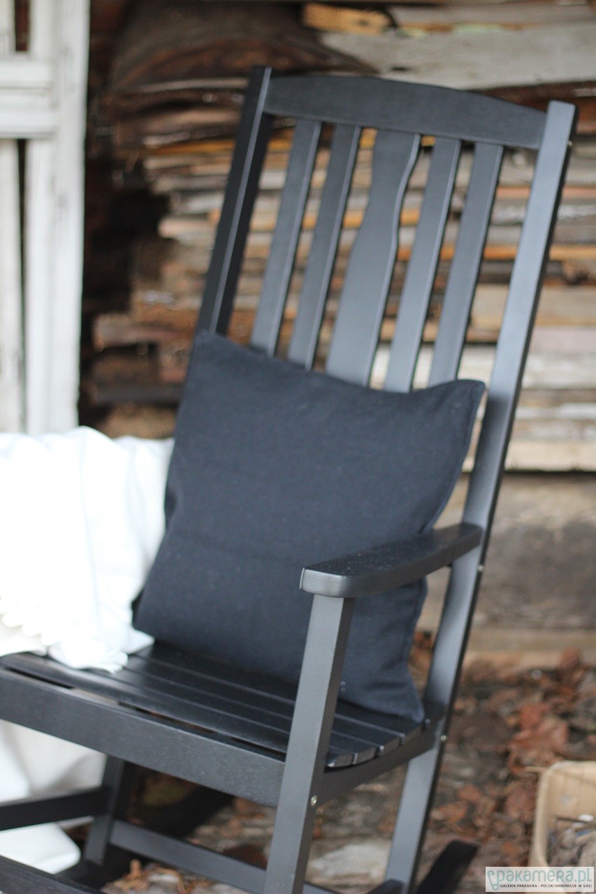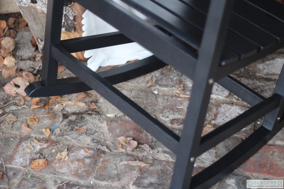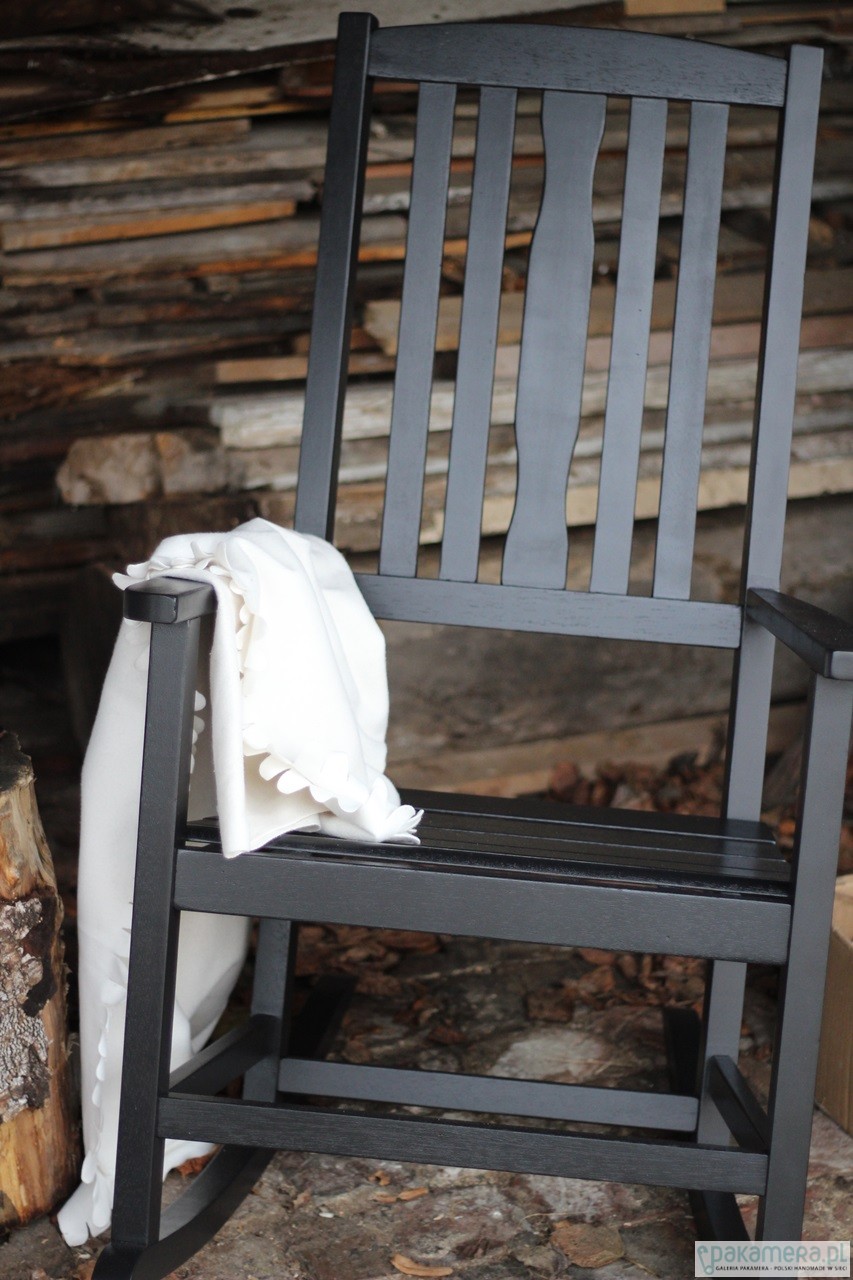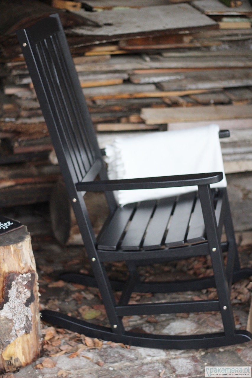 Drewniany fotel bujany pomalowany na czarny mat. Dostępna tylko 1 sztuka. Wysyłka fotela na palecie koszt 100 zł. Możliwość wysłania fotela w elementach-koszt do uzgodnienia. szerokość siedziska w najszerszym miejscu: 59 cm całkowita wysokość fotela: 114 cm długość płozów:78,5 cm wysokość oparcia: 60 cm szerokość oparcia:49 cm