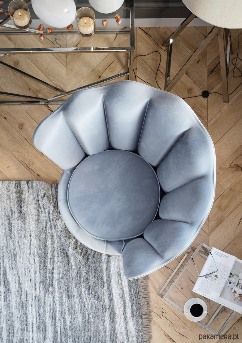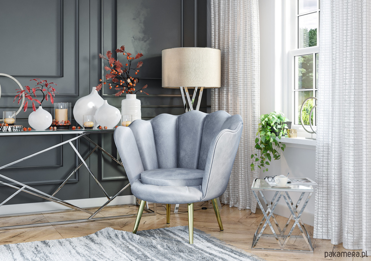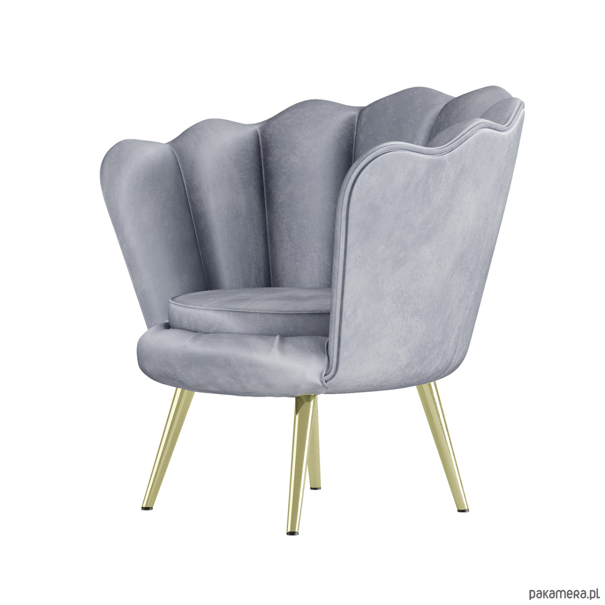 Fotel Shello to elegancki fotel z oparciem w kształcie muszli idealny jako ozdoba każdego wnętrza. Dzięki wygodnemu siedzisku o miękkim otapicerowaniu z aksamitnym wykończeniem każda chwila spędzona w salonie będzie przyjemnością.